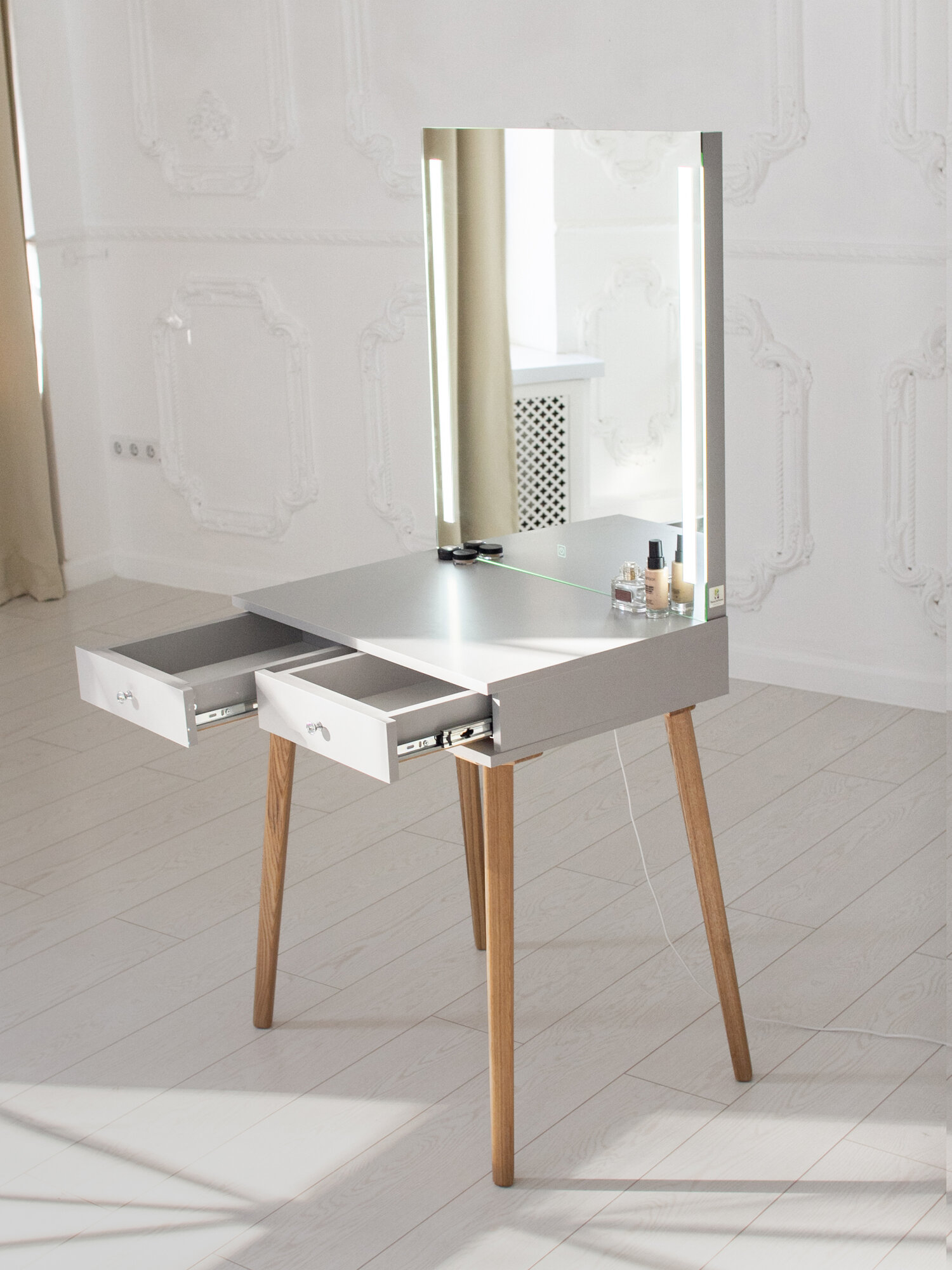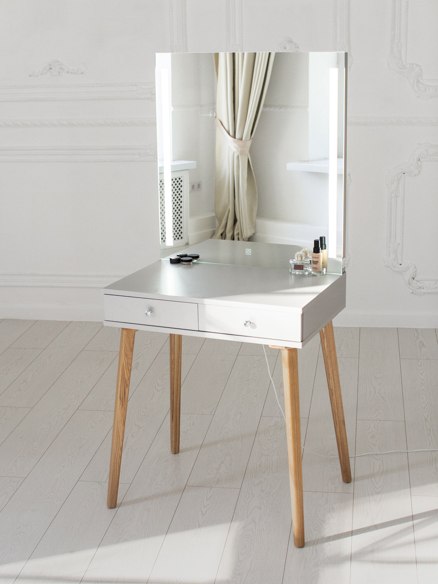 Макияжный столик с 2-я ящиками и зеркало-арка с Led подсветкой Белый