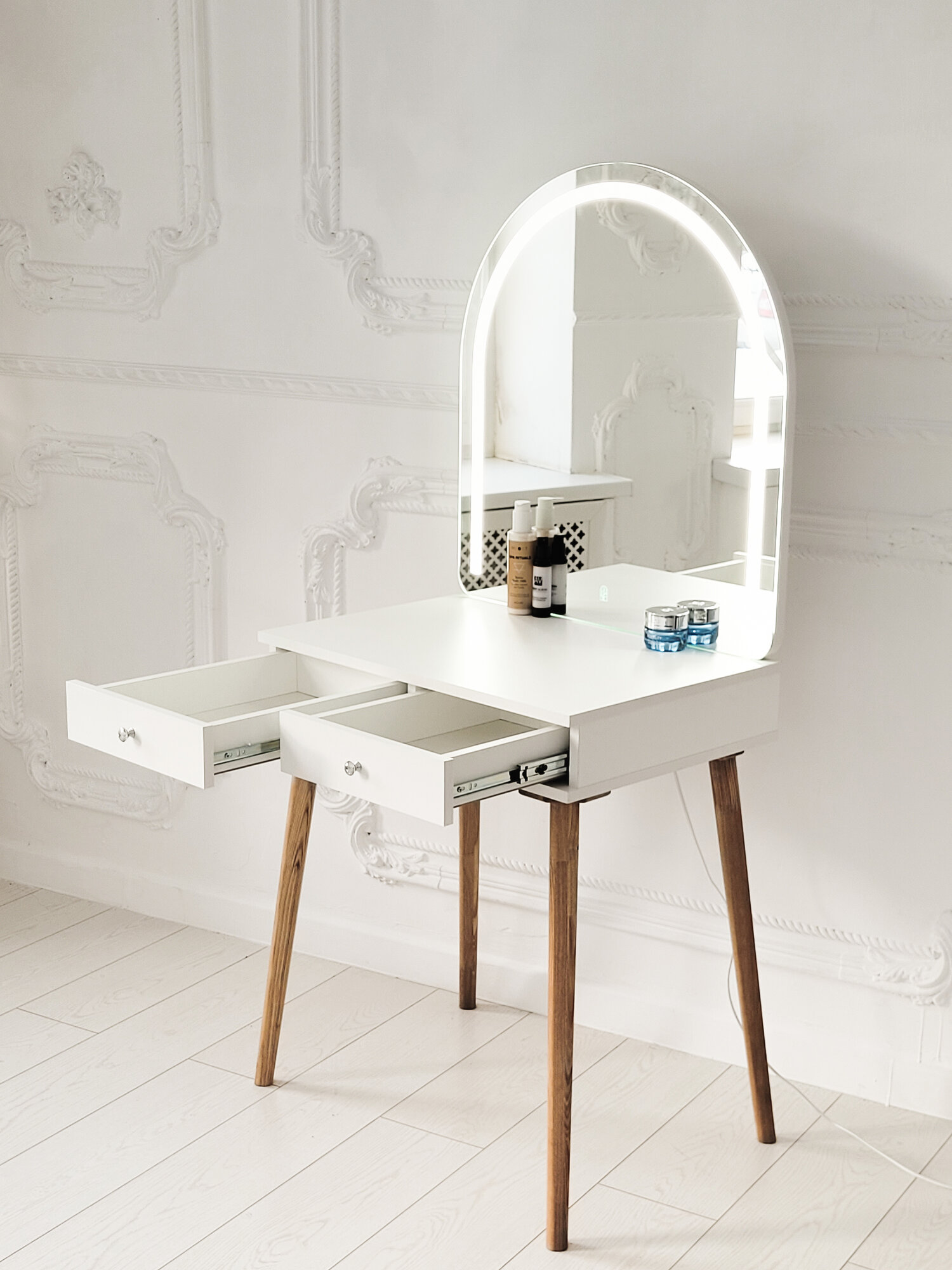 Купить Макияжный столик с 2-я ящиками и зеркало-арка с Led подсветкой Белый