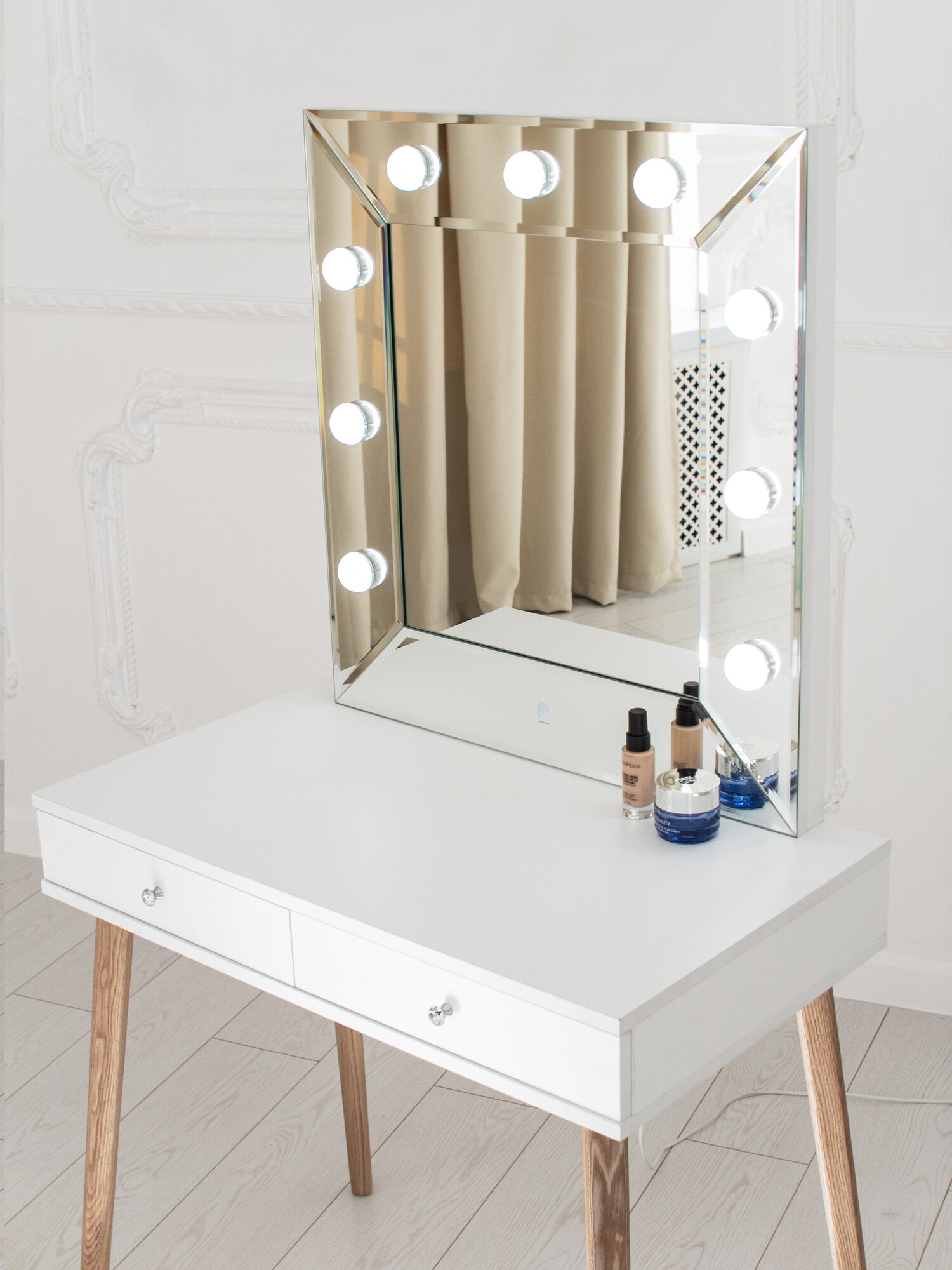 Туалетный гримерный столик с ящиком и зеркалом с Led подсветкой (White( белый)