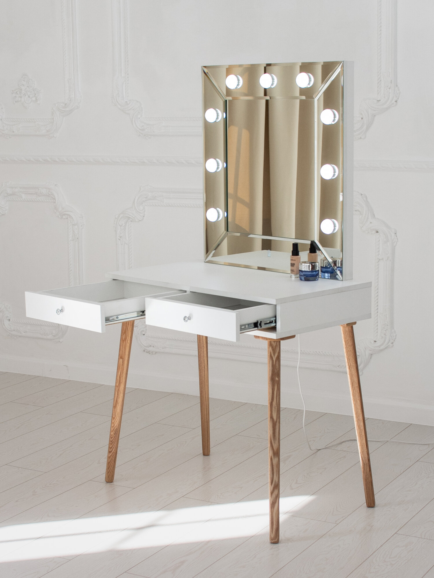 Туалетный гримерный столик с 2-я ящиками и зеркалом с Led подсветкой (White-белый)