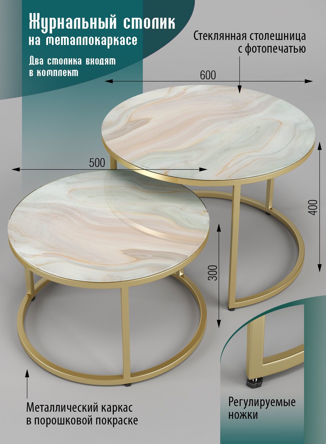 Стеклянный журнальный стол "Дуэт" 2 шт Золотая река