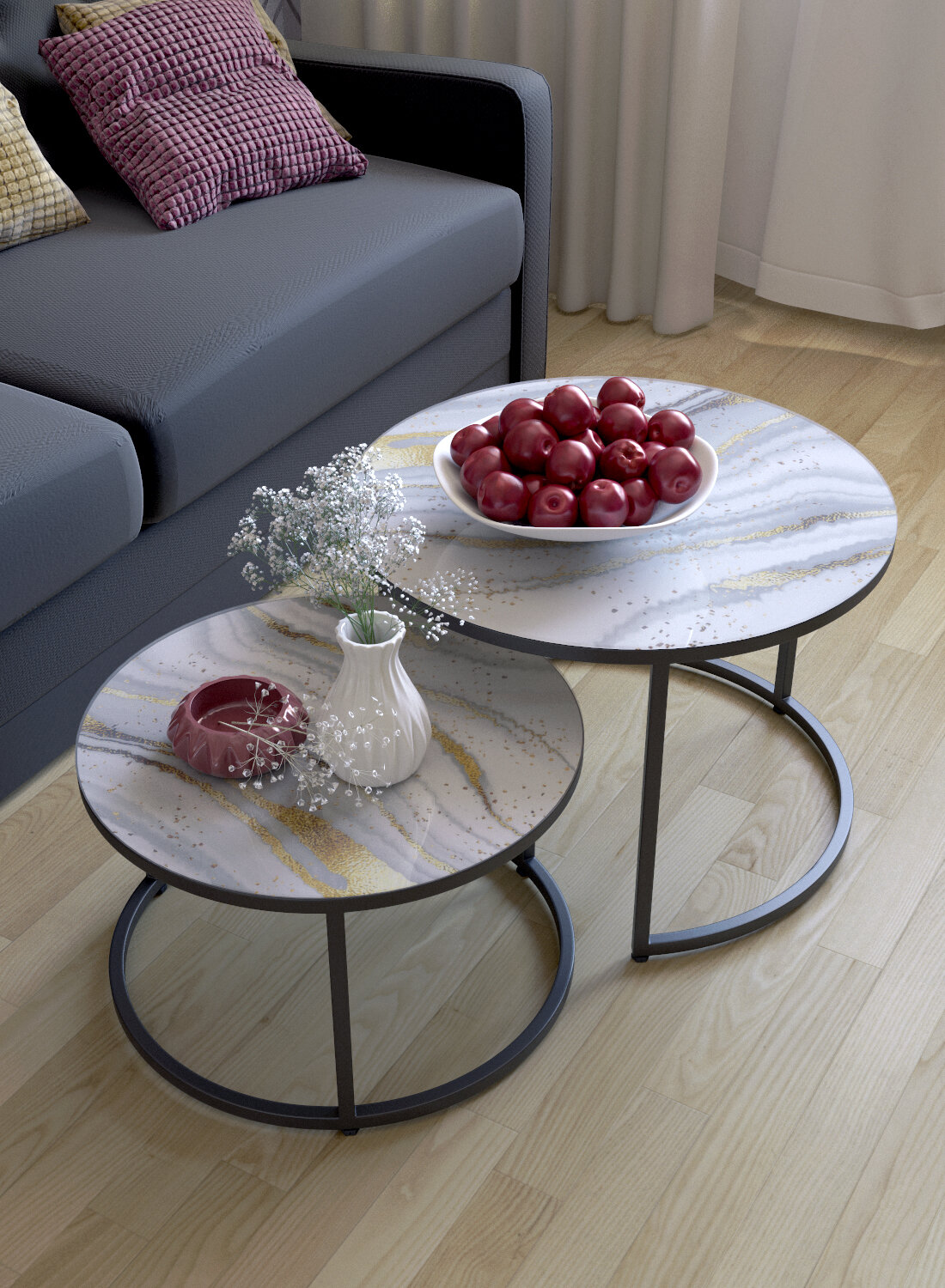 Стеклянный журнальный стол "Дуэт" 2 шт Золотая река/черный
