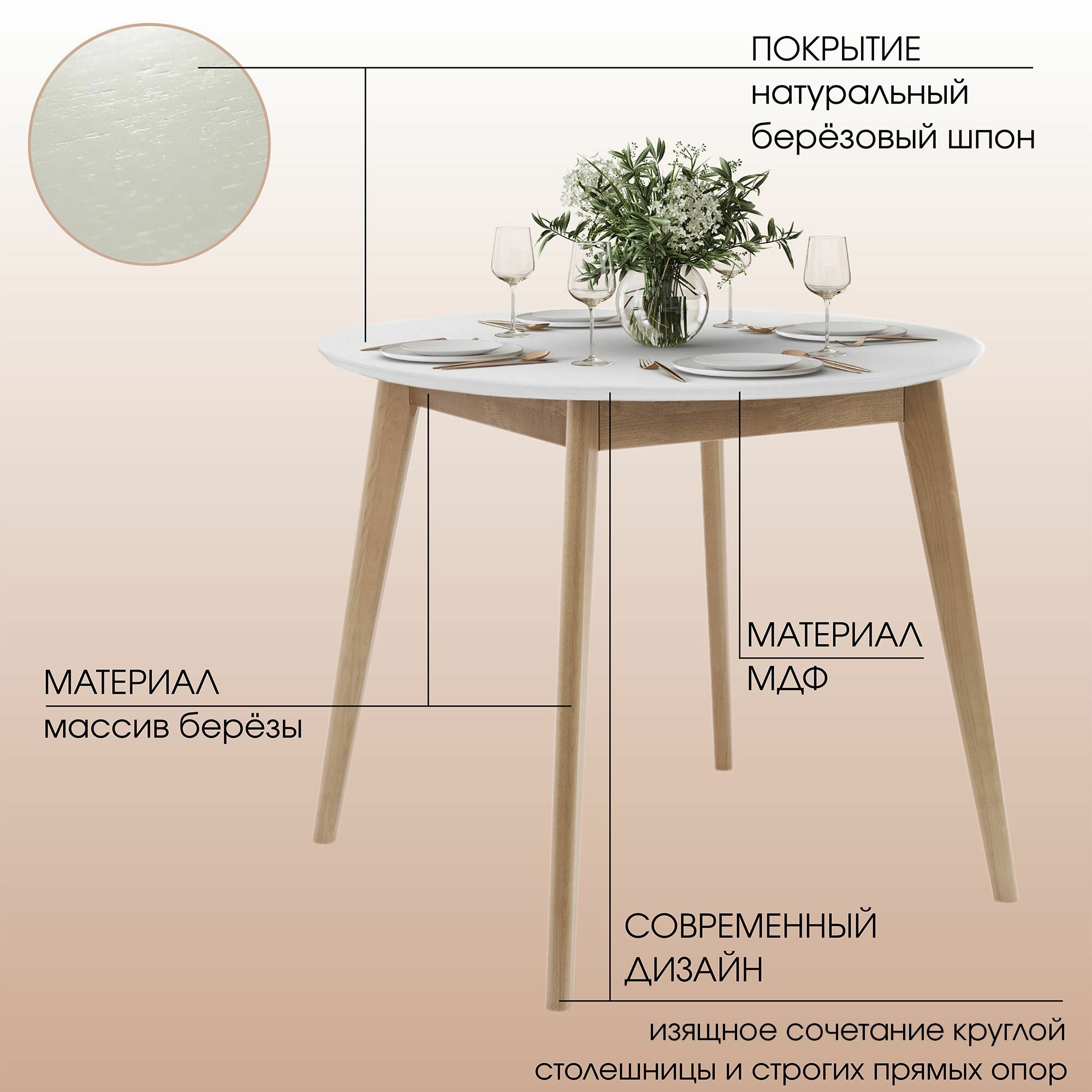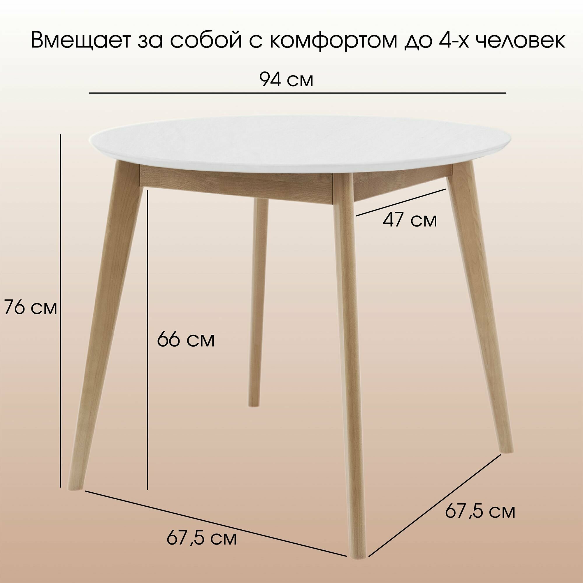 Стол кухонный Орион classic (94х94) см круглый, нераздвижной, деревянный - Белая эмаль