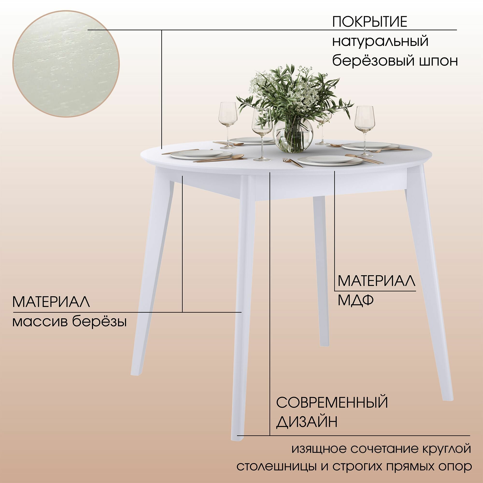 Стол кухонный Орион classic (94х94) см круглый, нераздвижной, деревянный - Белая эмаль интересное:
