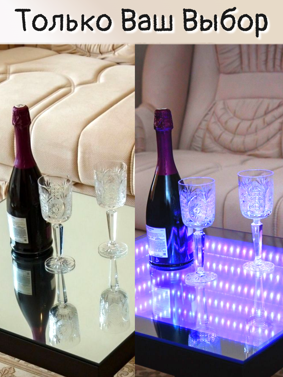 Зеркально-стеклянный журнальный стол с подсветкой, квадратный интересное: