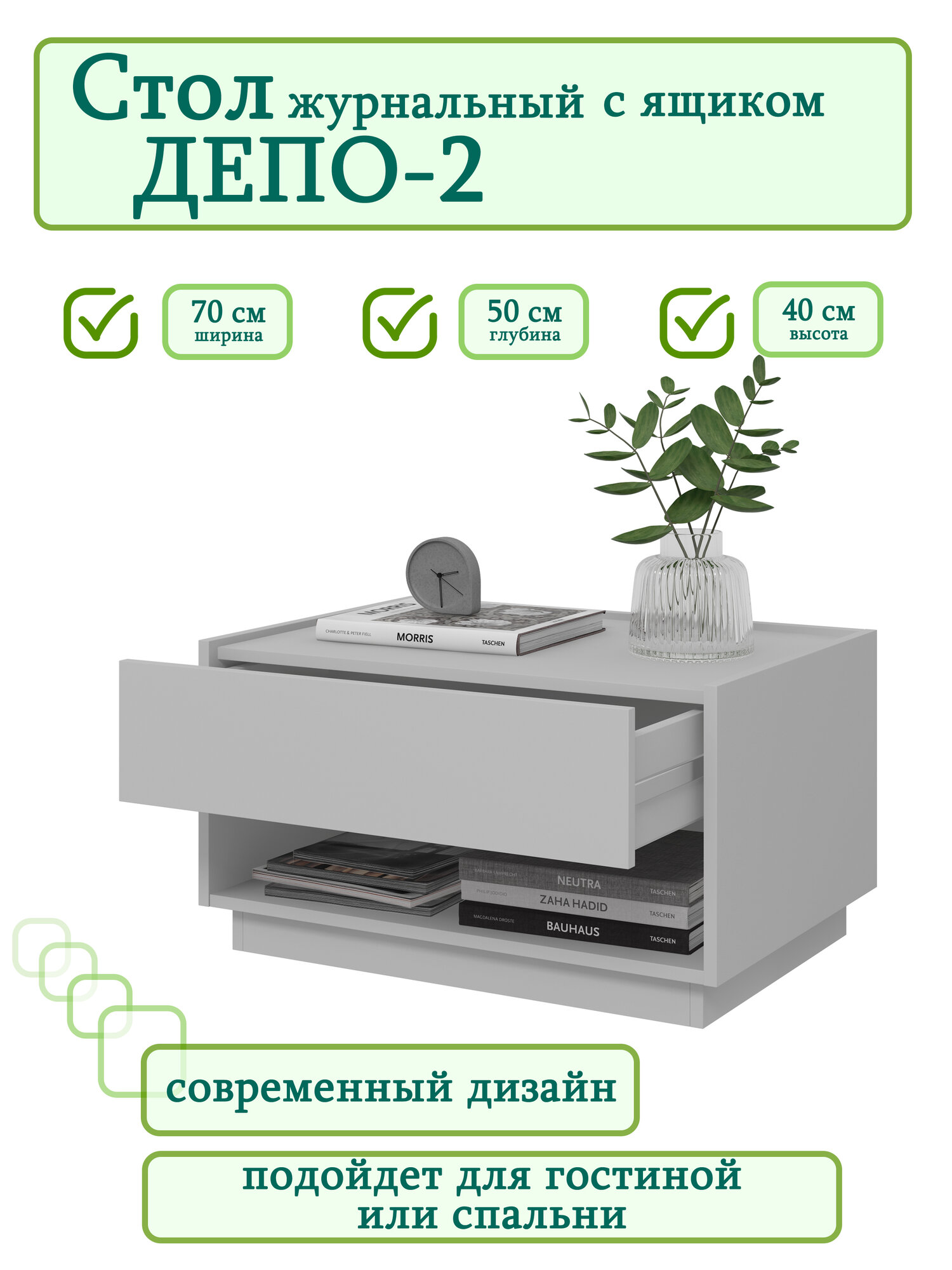 Есэндвич Депо-2 Журнальный столик с ящиком 70х40х50 см, (Белый)