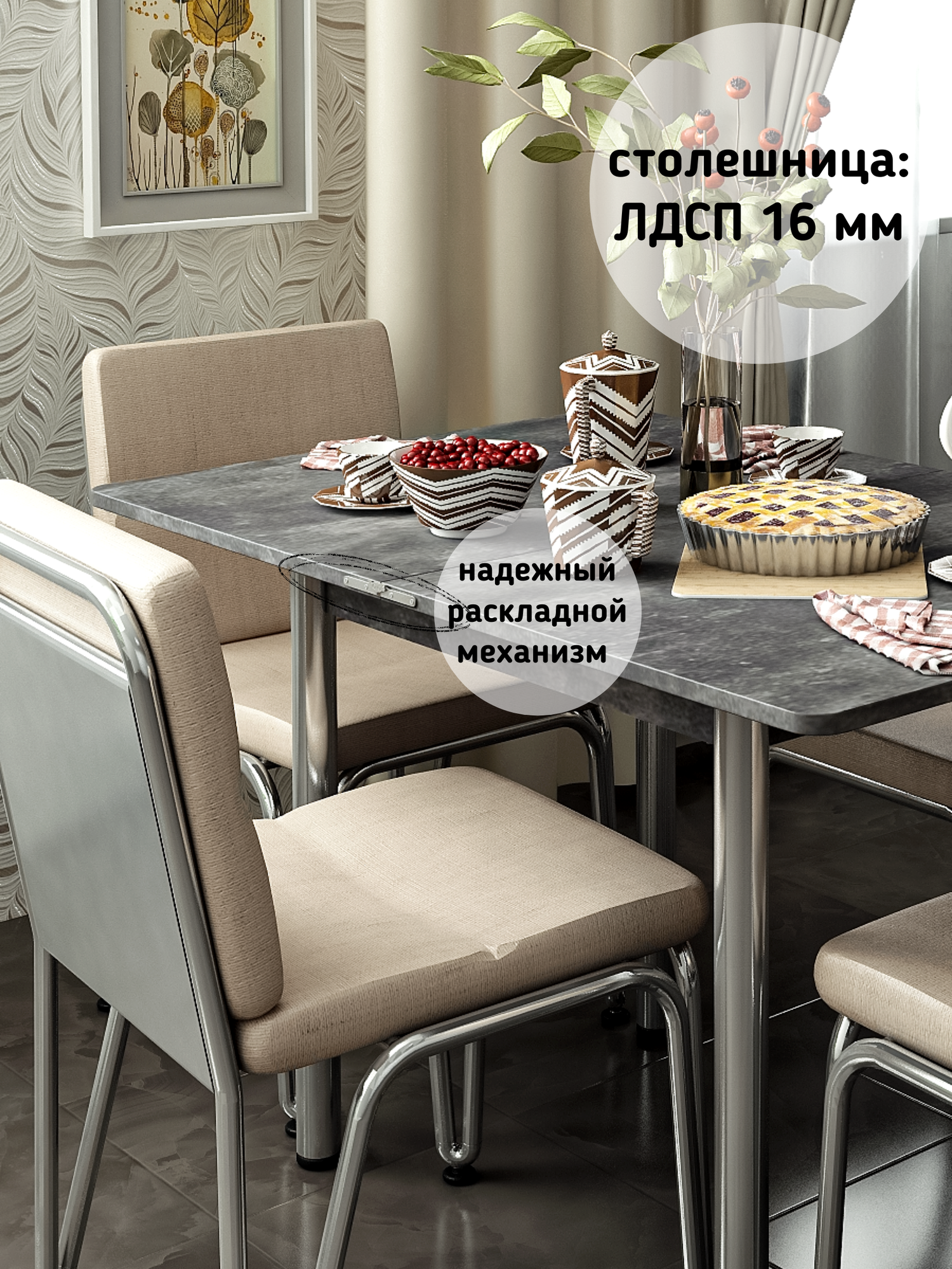 Стол обеденный раскладной прямоугольный для кухни, для дома и дачи, из ЛДСП, REGENT style интересное:
