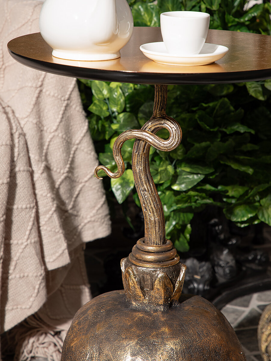 Купить Кофейный круглый столик Bogacho Золотой гранат с деревянной столешницей и фигурной ножкой в виде граната