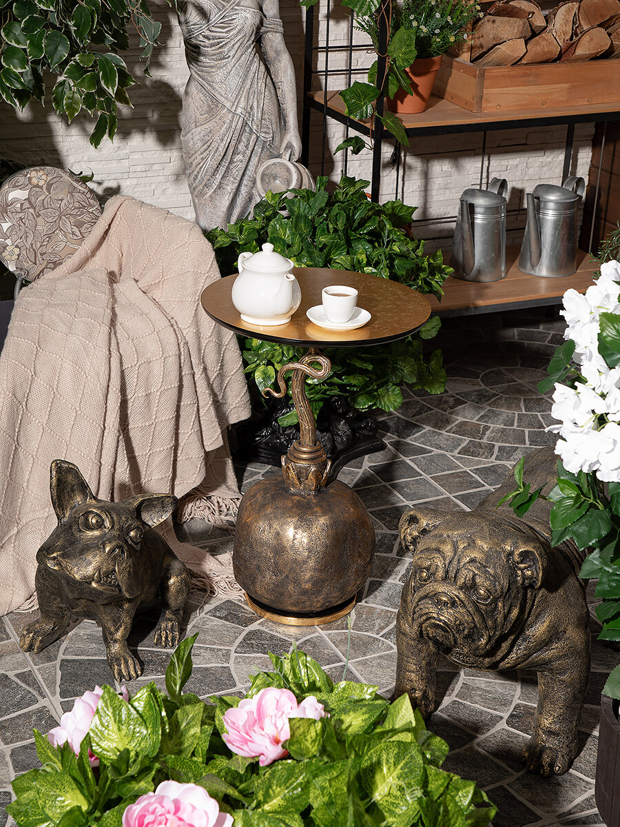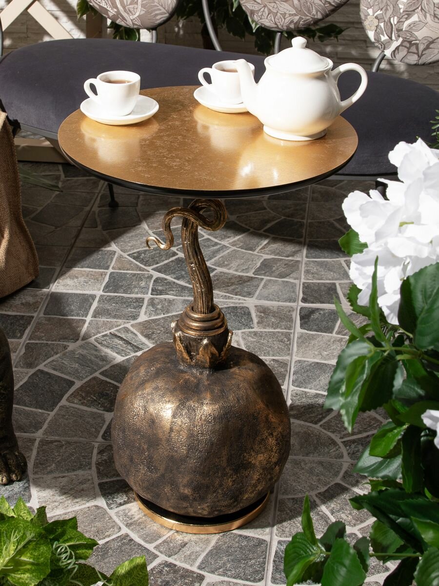 Кофейный круглый столик Bogacho Золотой гранат с деревянной столешницей и фигурной ножкой в виде граната интересное: