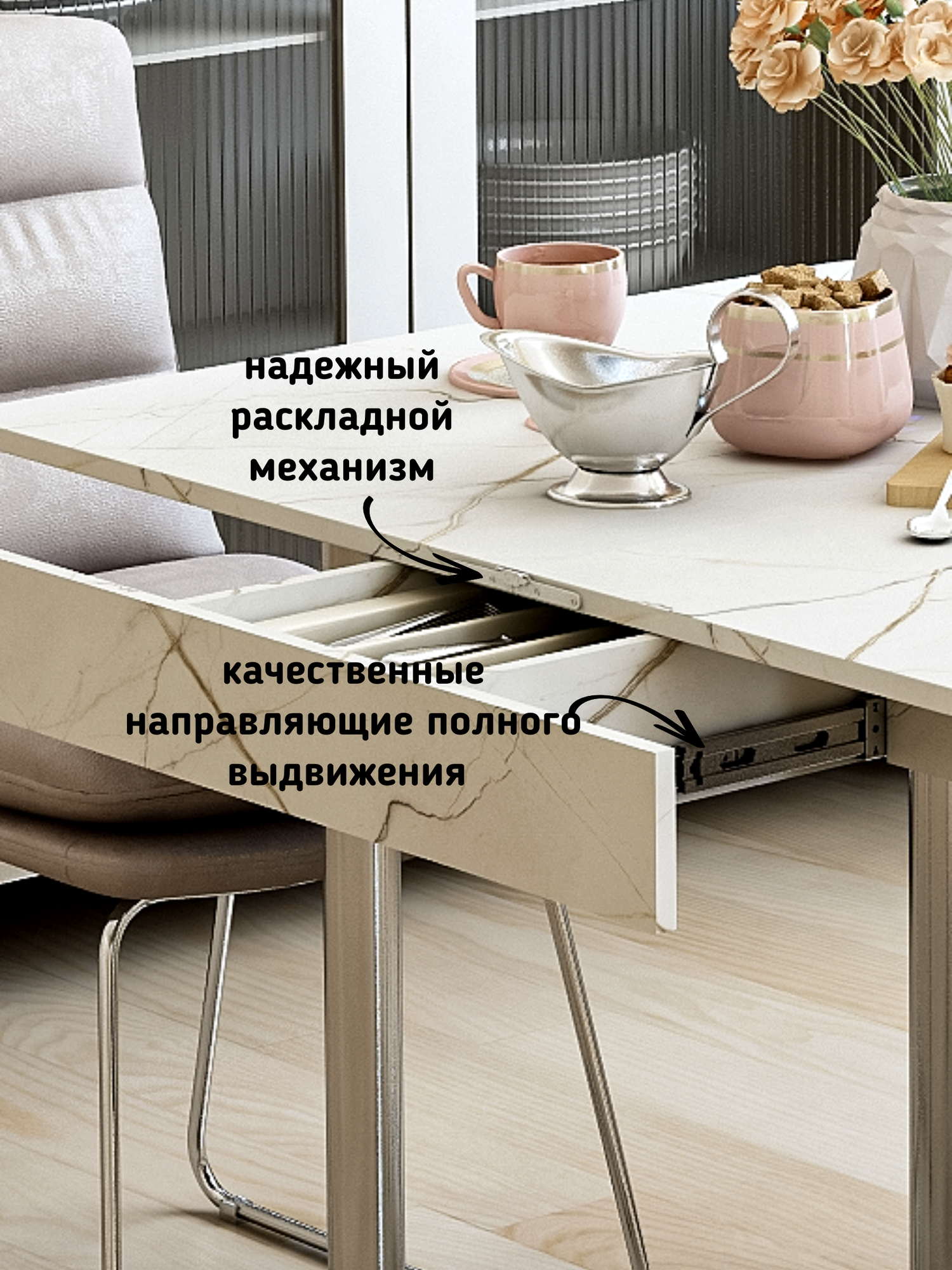 77х58 (116) см Раскладной кухонный стол с ящиком, для кухни, столовой, дачи и дома, с металлическими ножками, Венис