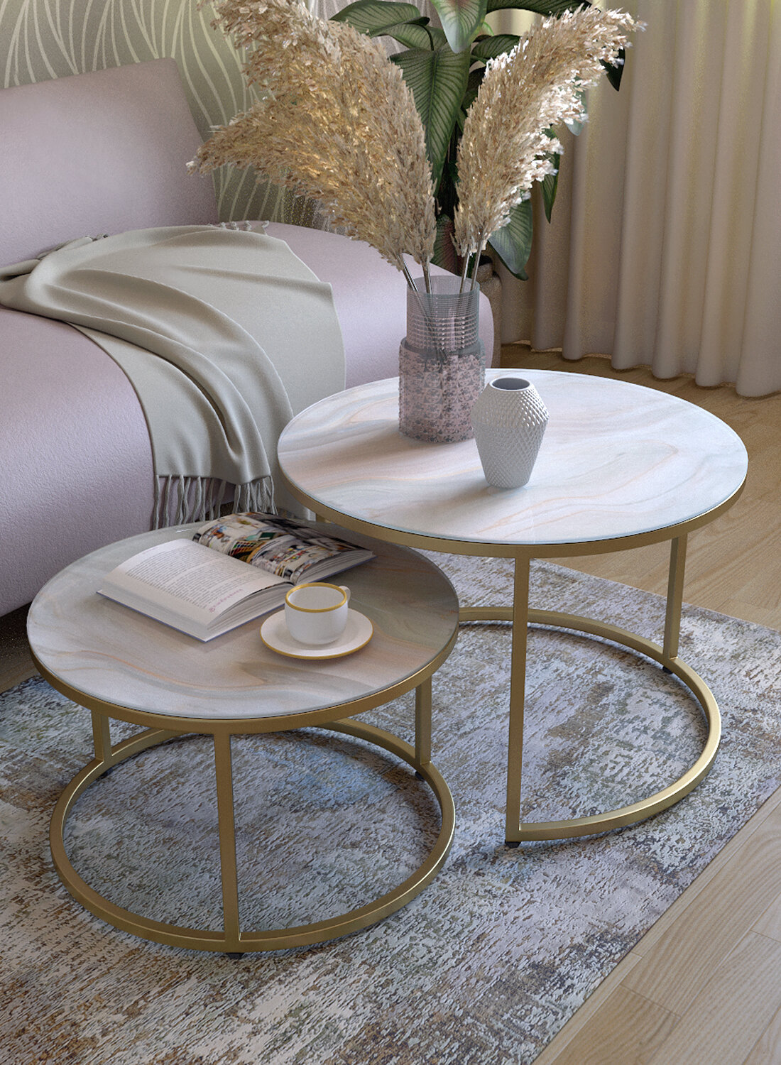 СохранитьКомплект стеклянных журнальных столиков Дуэт нежность/золото интересное:
