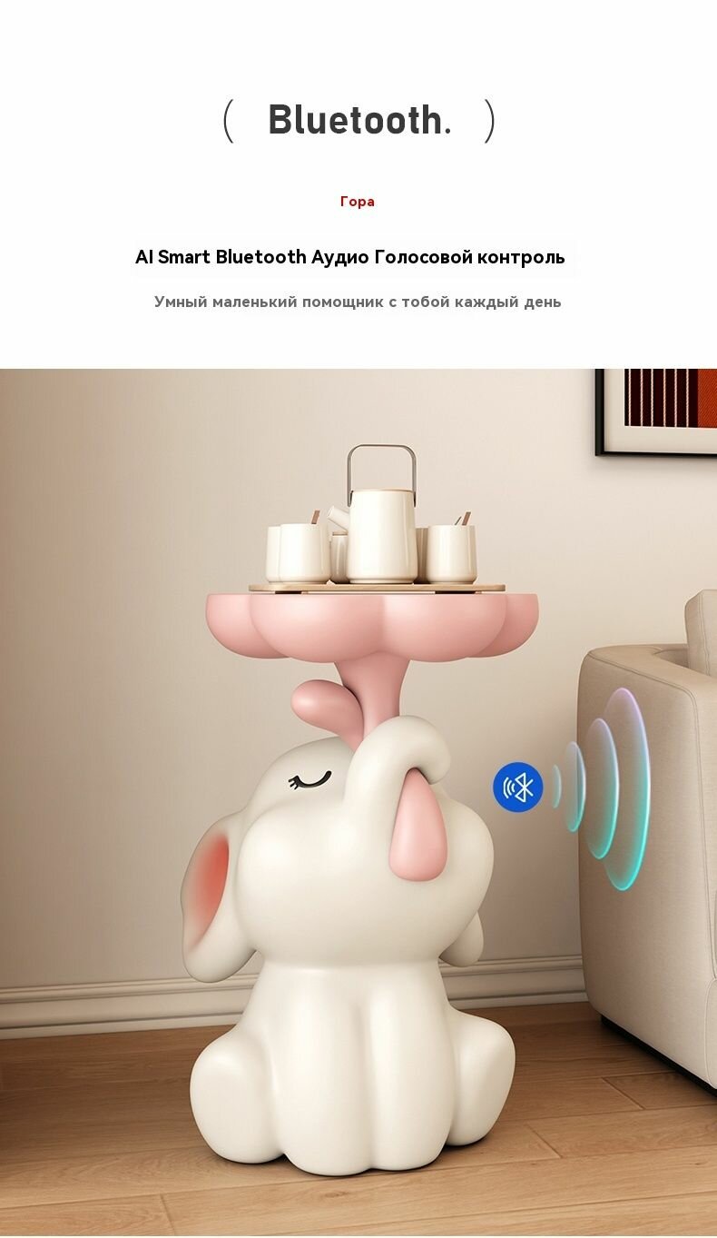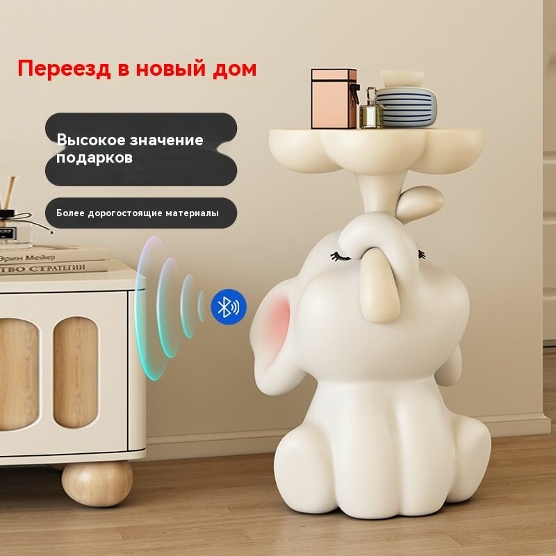 Столик "Слоненок", с Bluetooth-колонкой, эпоксидная смола, минимализм, белый/розовый