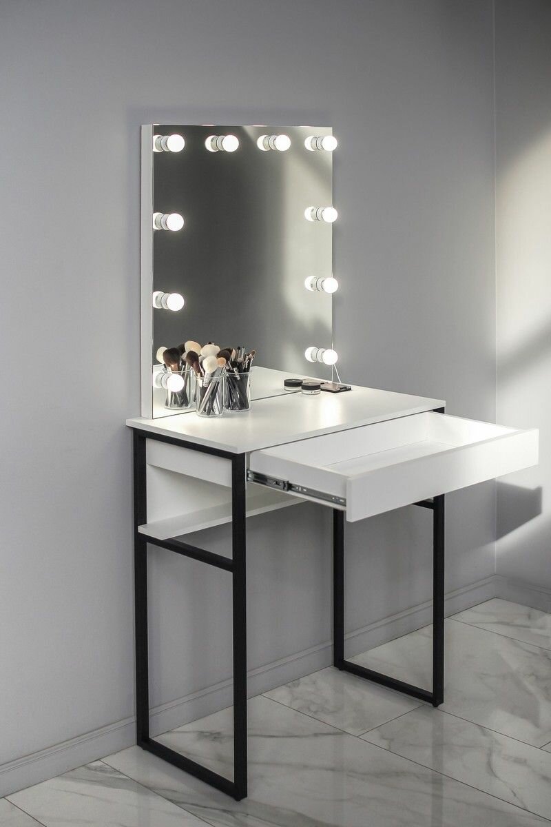 Высокая гримерная станция с ящиком LOFT зеркало в раме (белый)