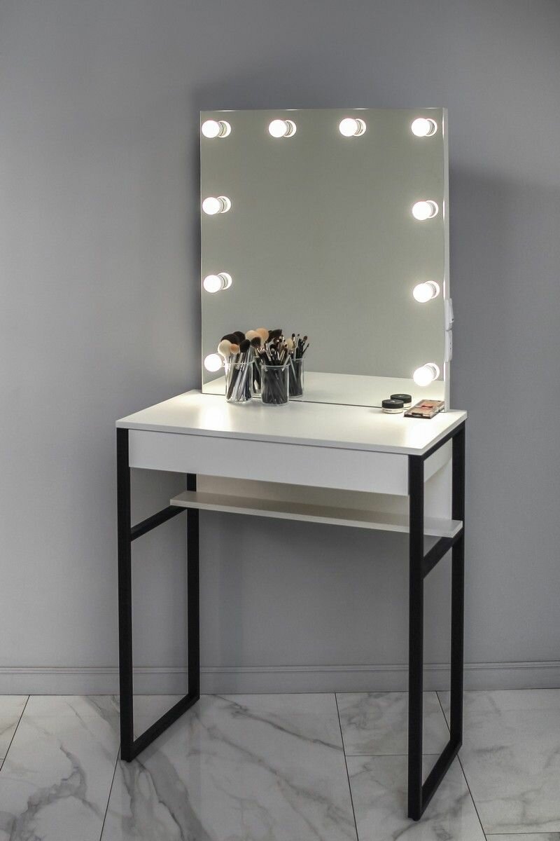 Высокая гримерная станция с ящиком LOFT зеркало с Led подсветкой (LED Вотан)