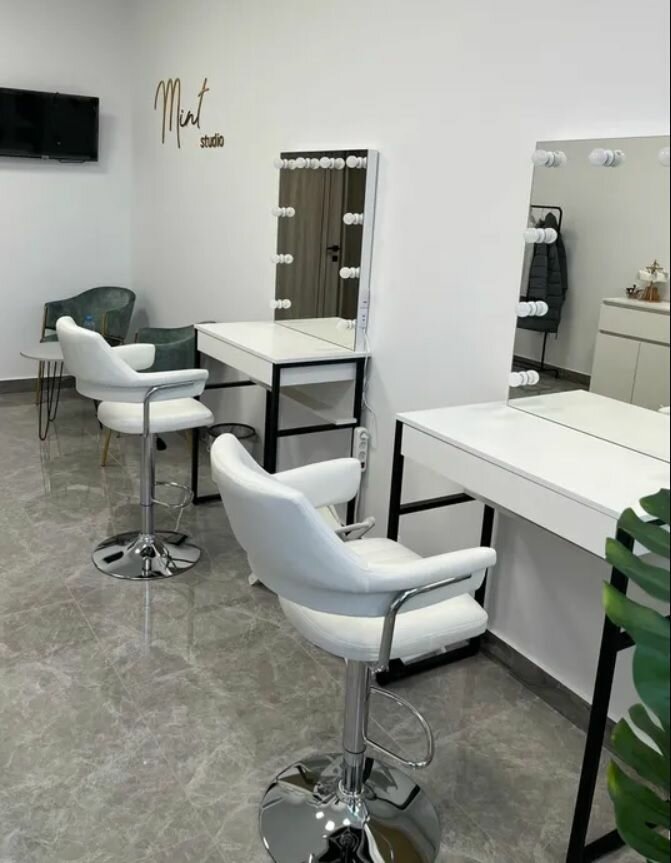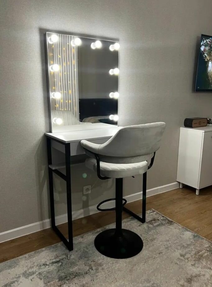 СохранитьВысокий туалетный столик на металлических ножках LOFT, зеркало без рамы белый интересное:
