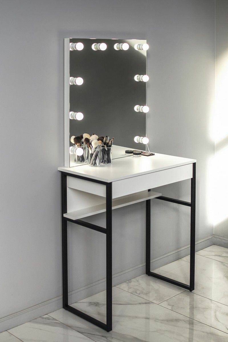 Высокая гримерная станция с ящиком LOFT зеркало с Led подсветкой (Белый LED)