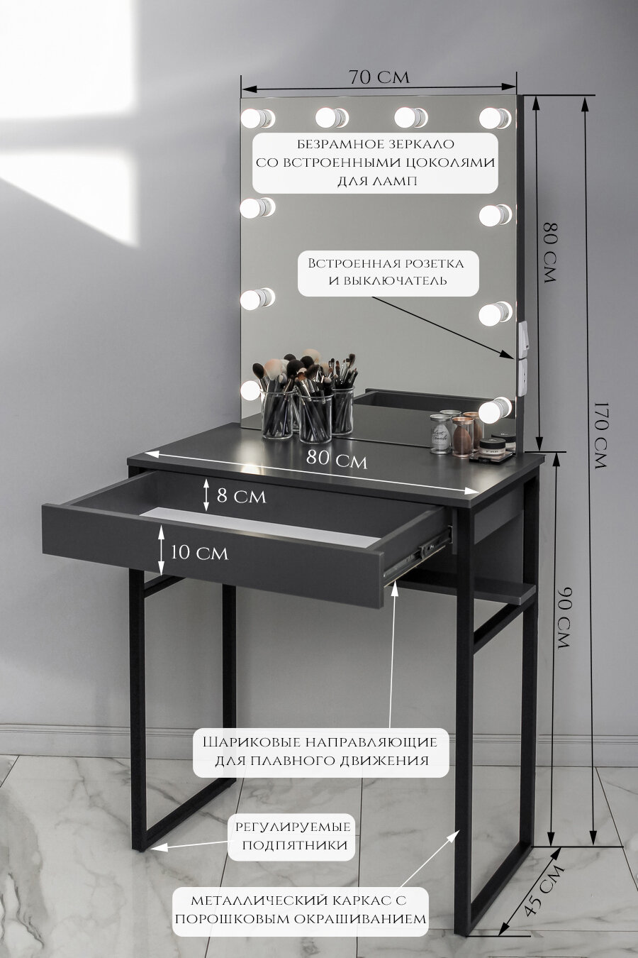 Высокая гримерная станция с ящиком LOFT зеркало с Led подсветкой графит