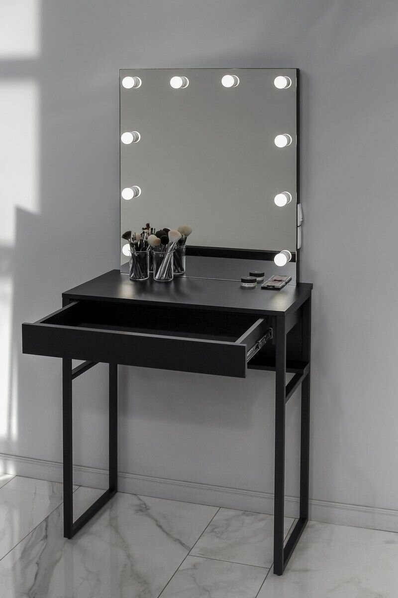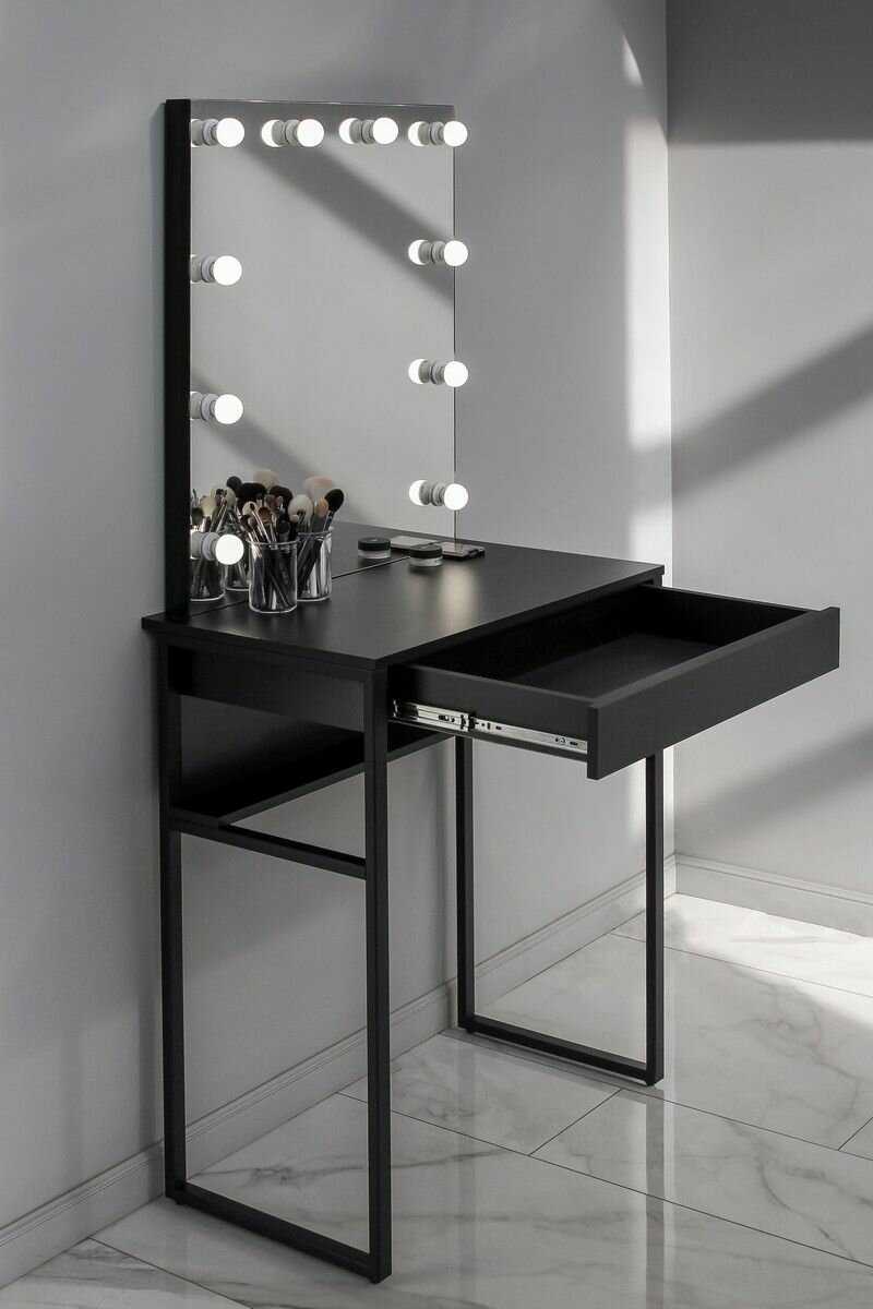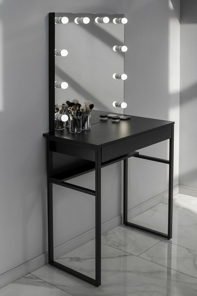 Высокая гримерная станция с ящиком LOFT зеркало с Led подсветкой (Черный LED)
