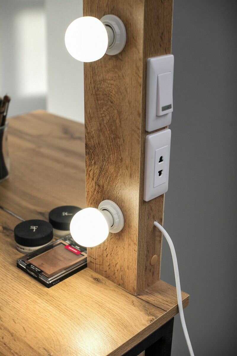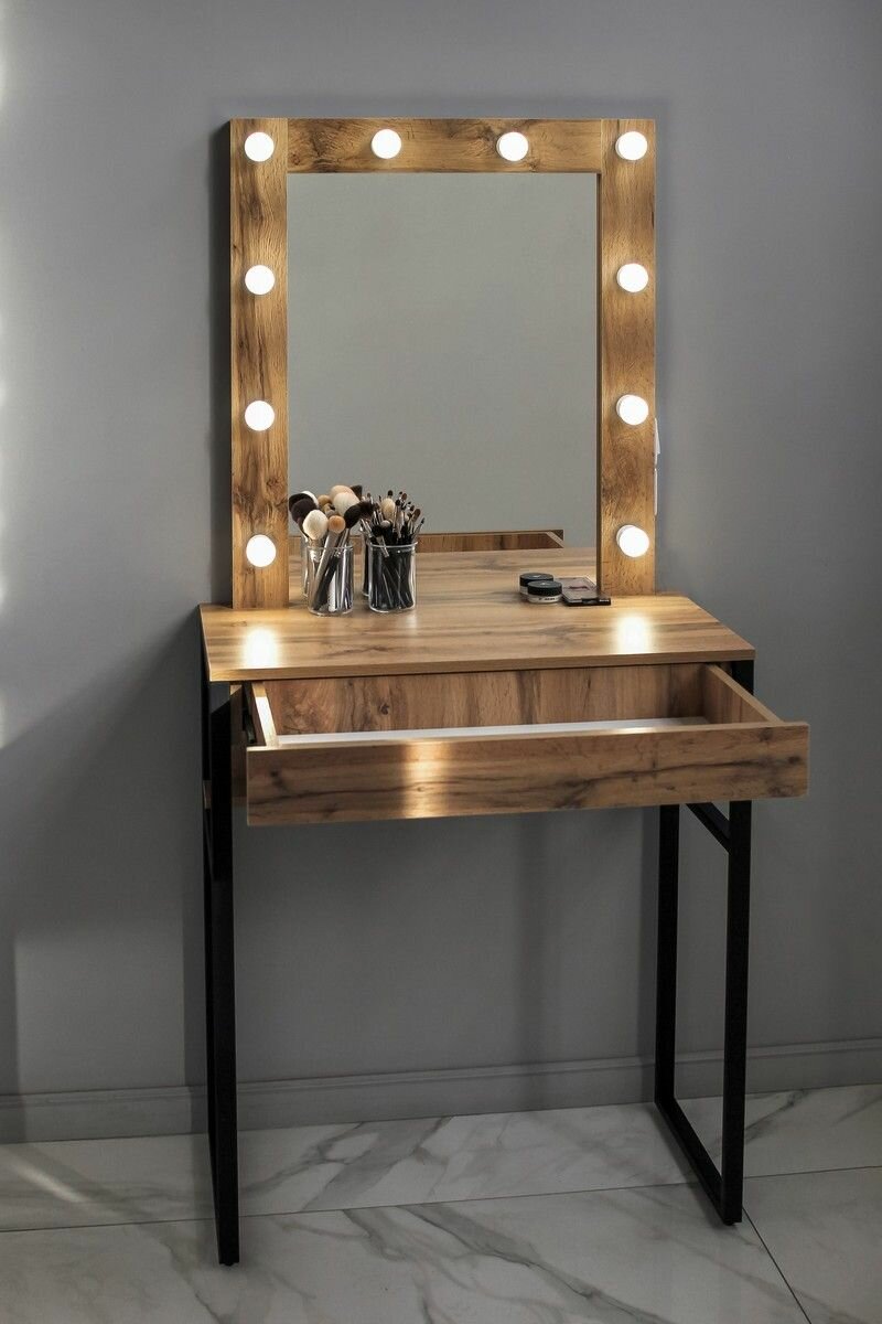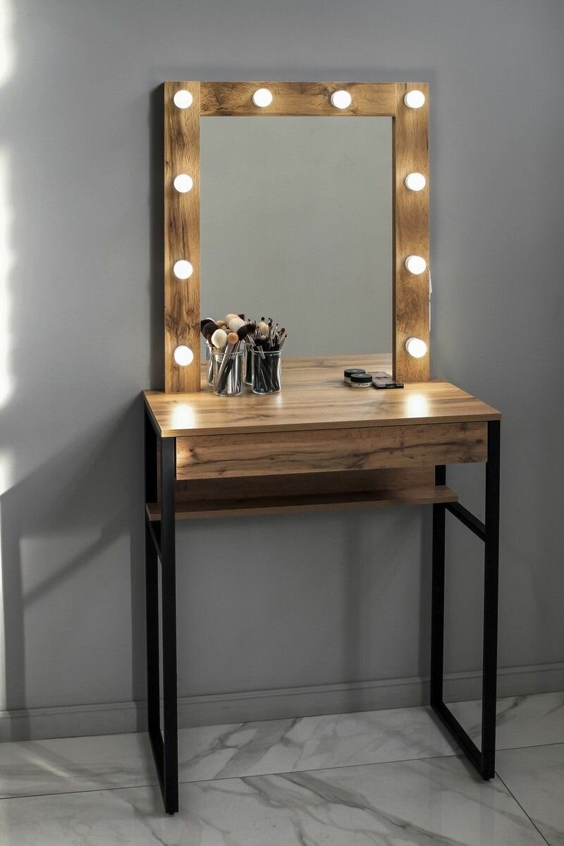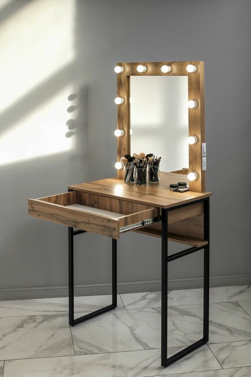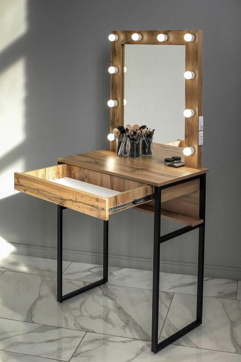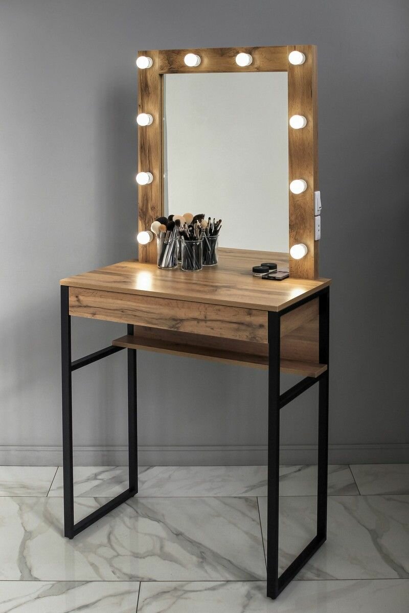 СохранитьВысокая гримерная станция с ящиком LOFT зеркало в раме на металлических ножках ДУБ вотан интересное: