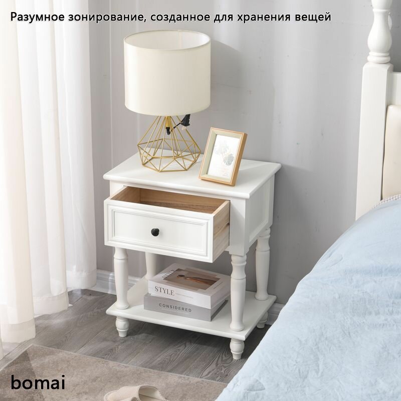 Прикроватная тумбочка, ретро-стиль, белая, 30х45х55 см, цельное дерево, напольн