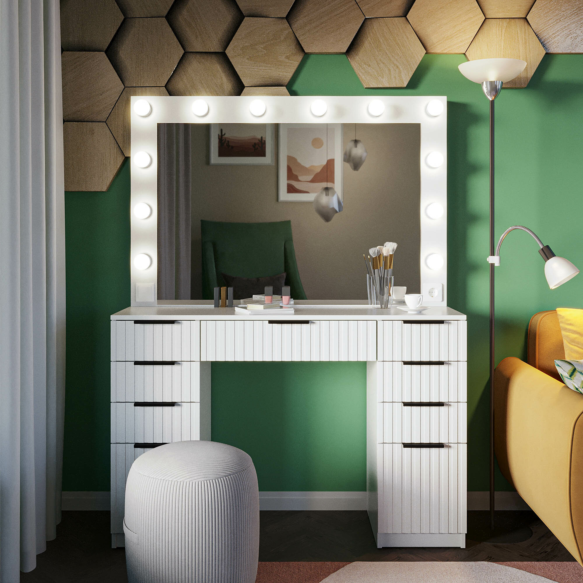 Туалетный столик GRIMSTOL 4Б120-ВТ, гримёрное зеркало с лампочками, LED-подсветка для макияжа, для спальни, белый, Вельвет