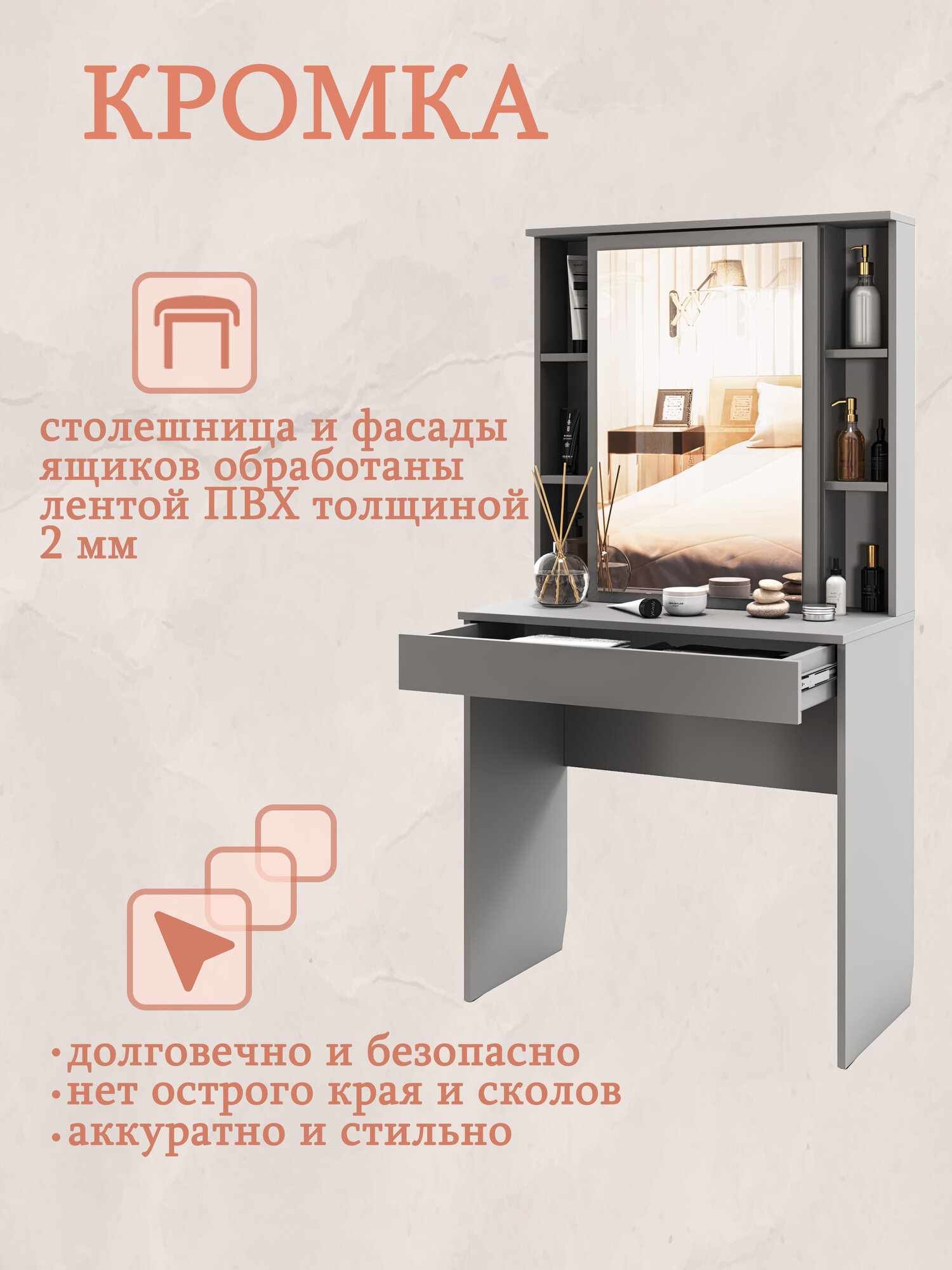 Купить Есэндвич Депо-3 Туалетный столик с зеркалом 80х150х40 см, (Дуб бунратти/Вулканический серый), с полками, с ящиком