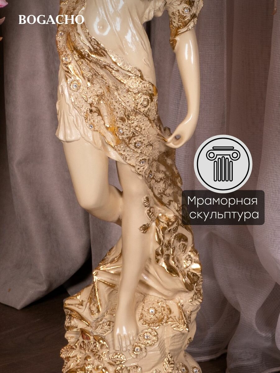 Подставка, этажерка, столик из литьевого мрамора BOGACHO Изабель бежевая со столешницей диаметром 34 сантиметров бежевой с бортиками