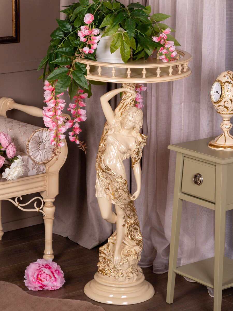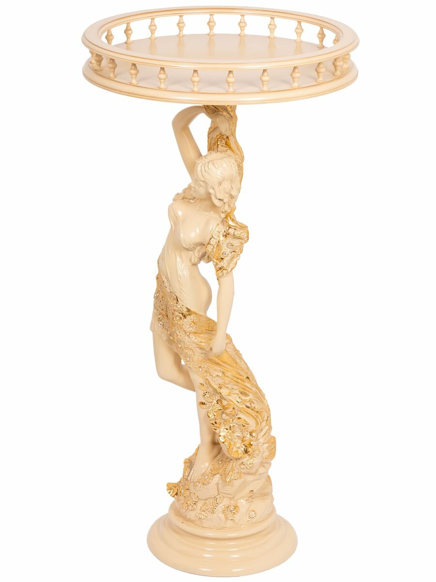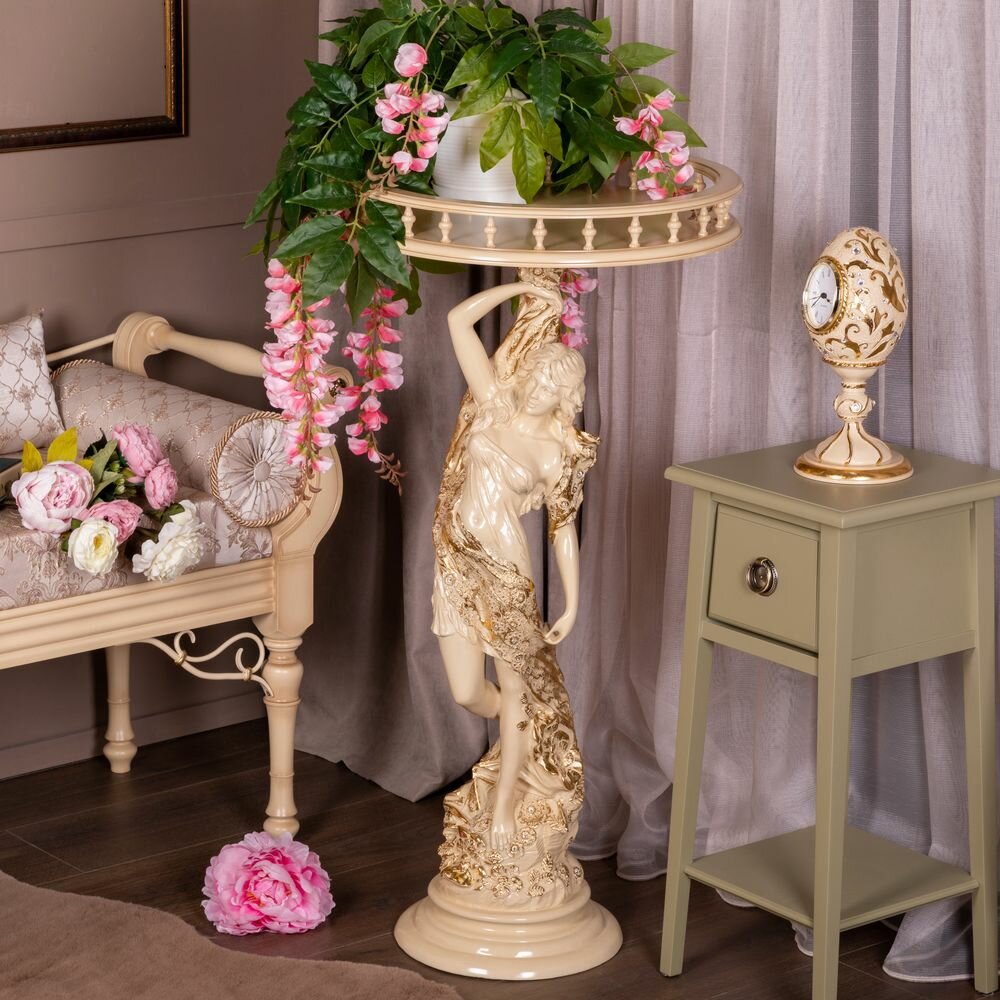 Купить Декоративная подставка BOGACHO Изабель бежевая со столешницей диаметром 45 сантиметров с бортиками