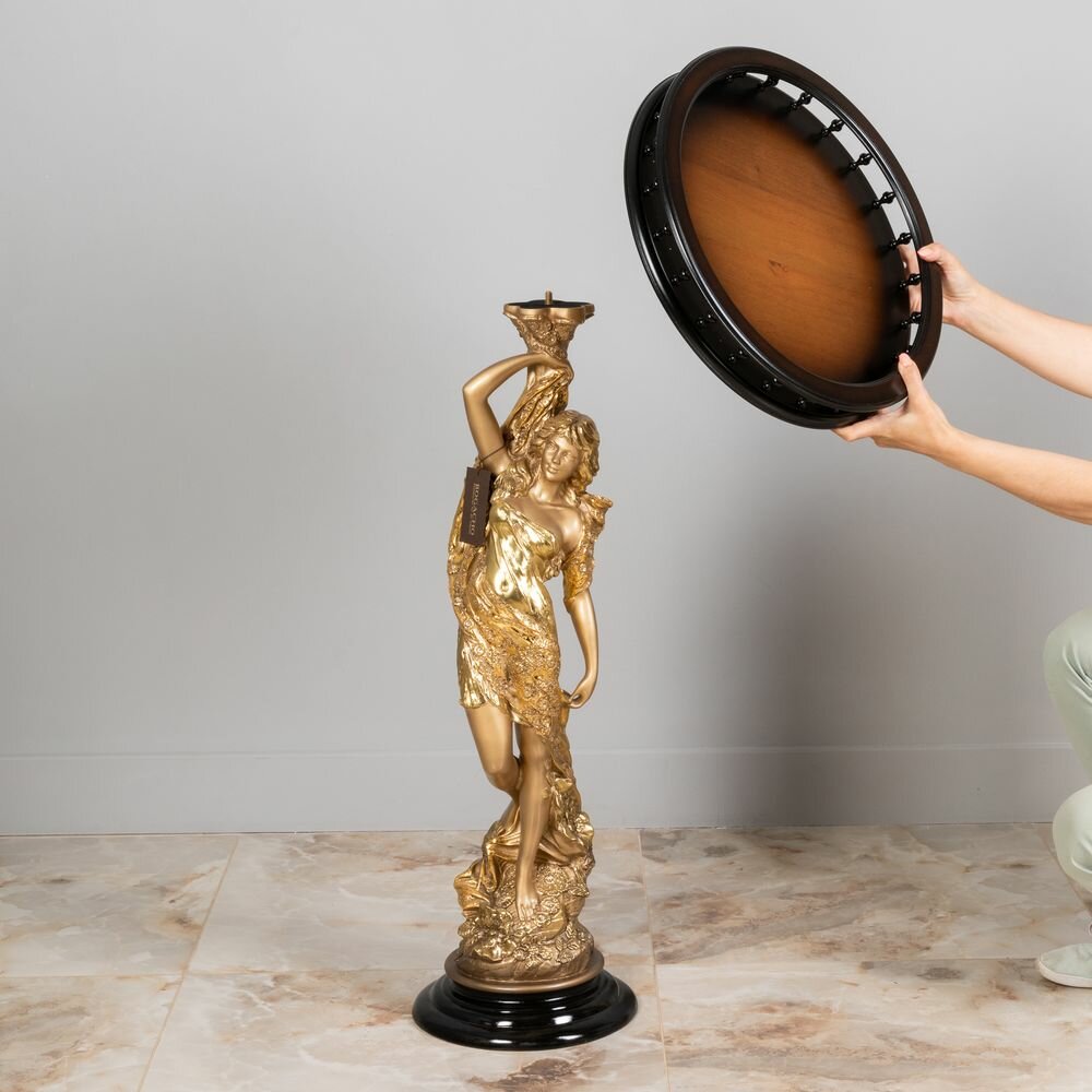 Декоративная подставка из литьевого мрамора BOGACHO Изабель бронзовая со столешницей диаметром 45 сантиметров коричневой с бортиками