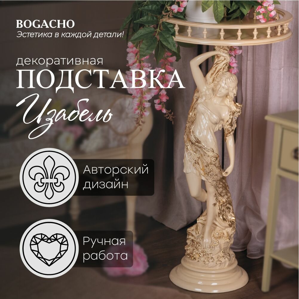 СохранитьДекоративная подставка BOGACHO Изабель бежевая со столешницей диаметром 45 сантиметров с бортиками интересное:
