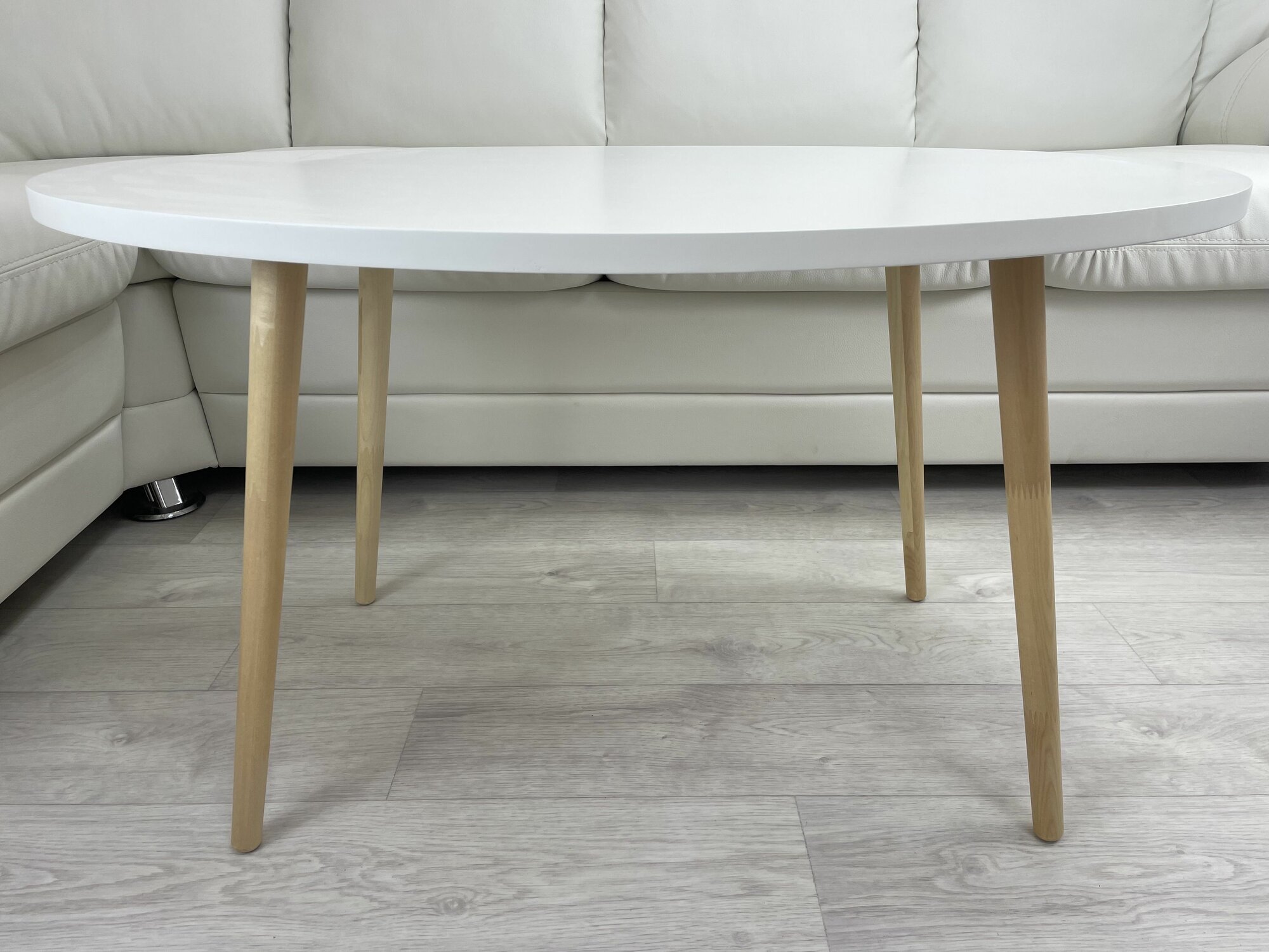 Журнальный овальный столик белый ножки конус тонир EDWbk04 интересное: