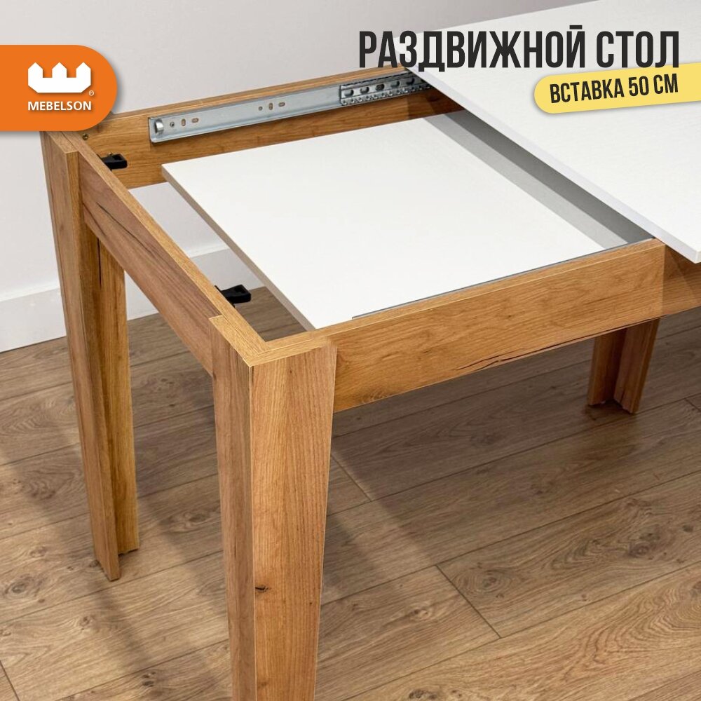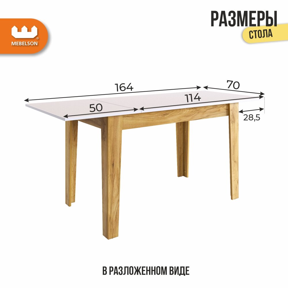Стол обеденный раздвижной "Цезарь" 114 (164) *70 см, белое дерево/цвет дуб крафт золотой, Mebelson интересное: