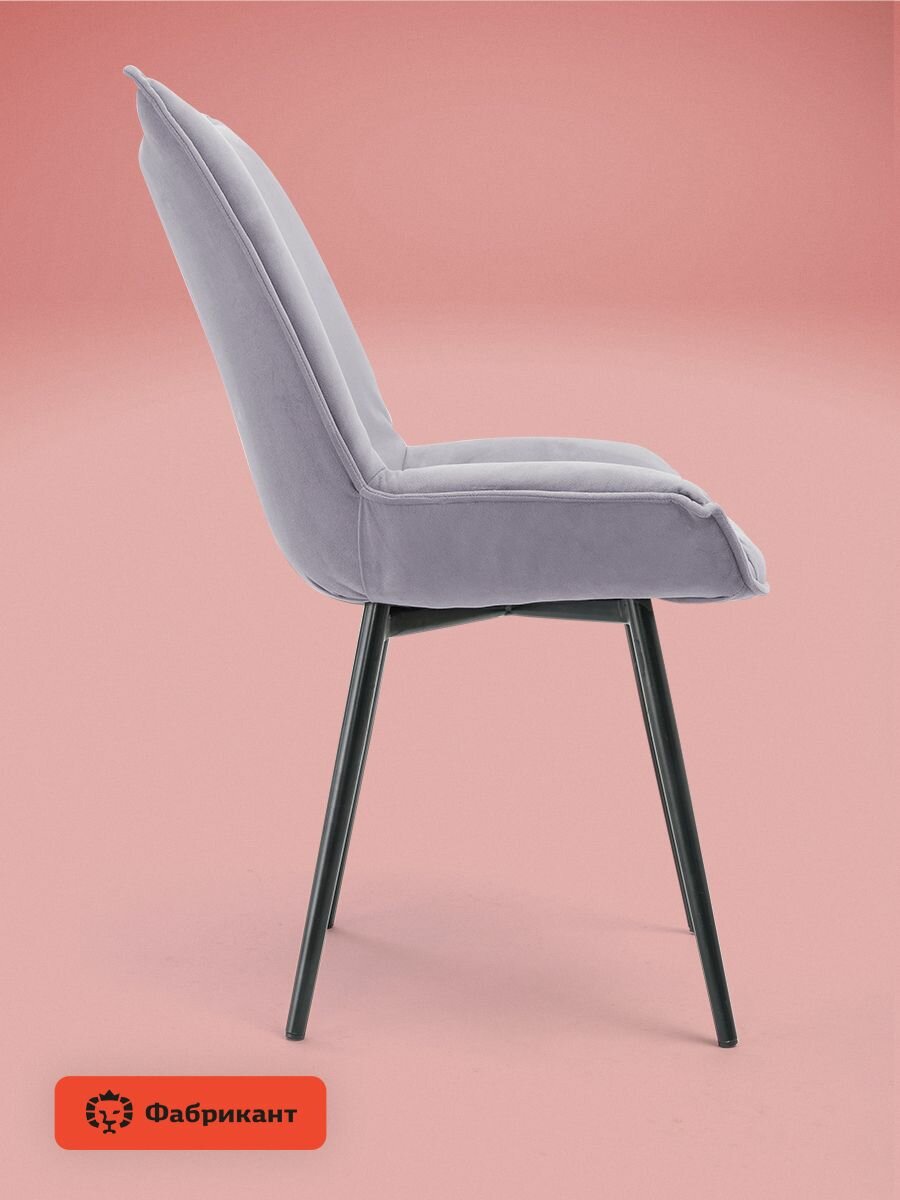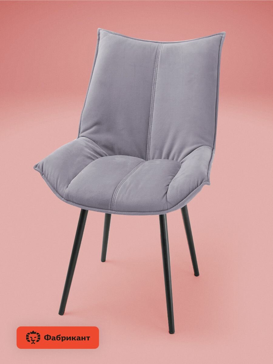 Стулья для кухни мягкие Фабрикант осло велюр антикоготь сиренево-серый, чёрные ножки, комплект 2 шт.