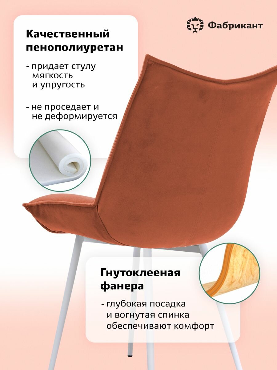Стулья для кухни мягкие Фабрикант осло велюр терракотовый, белые ножки, комплект 2 шт.