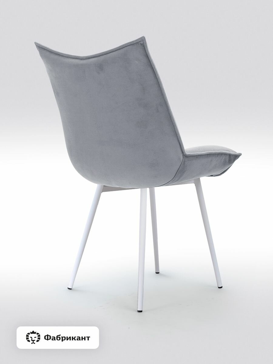 Стулья для кухни мягкие Фабрикант осло велюр антикоготь светло-серый, белые ножки, комплект 2 шт.