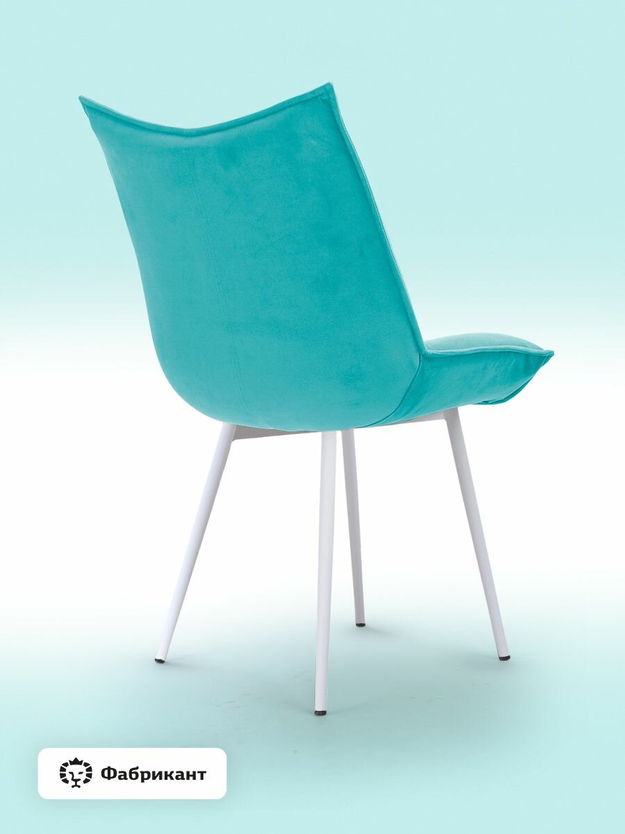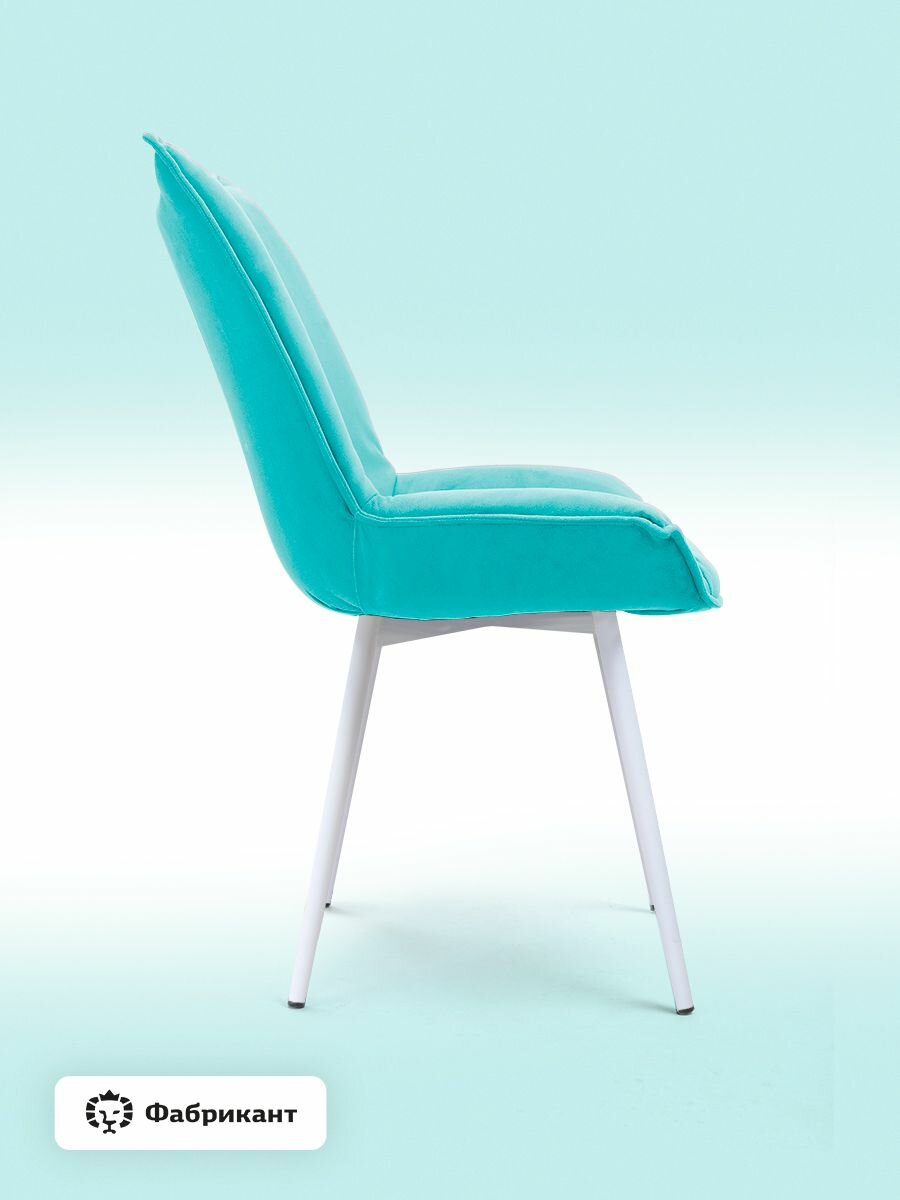 Стулья для кухни мягкие Фабрикант осло велюр светло-бирюзовый, белые ножки, комплект 2 шт.