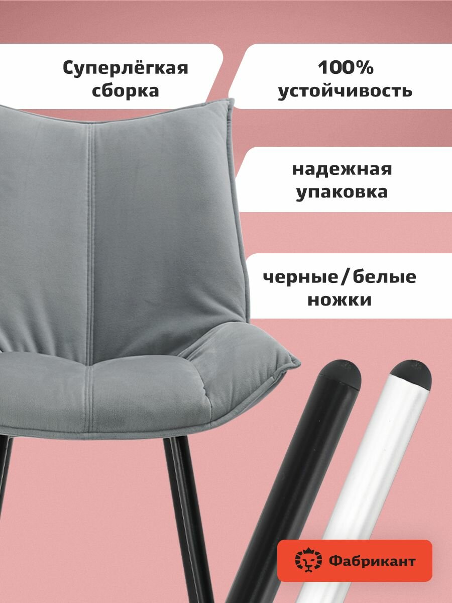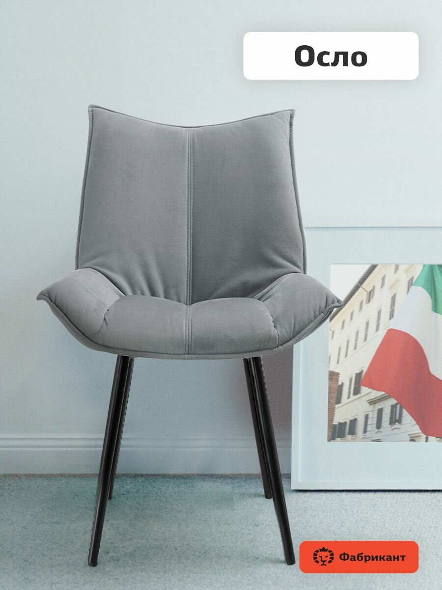 Стулья для кухни мягкие Фабрикант осло велюр антикоготь светло-серый, чёрные ножки, комплект 2 шт.