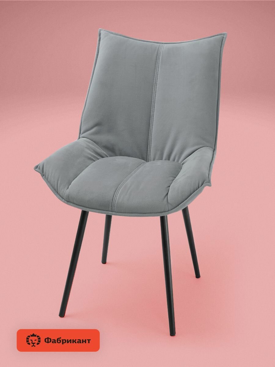 Стулья для кухни мягкие Фабрикант осло велюр антикоготь сиренево-серый, чёрные ножки, комплект 2 шт.