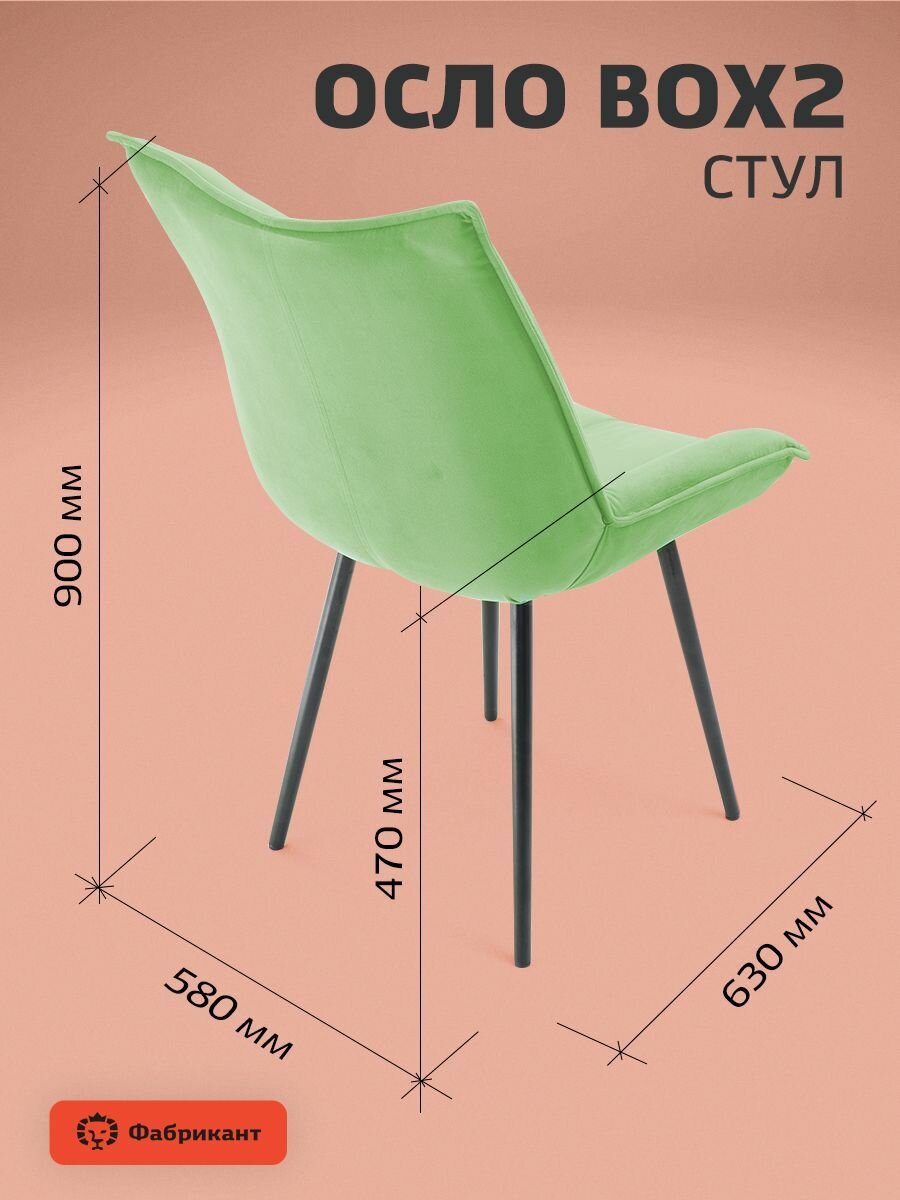 Стулья для кухни мягкие Фабрикант осло велюр антикоготь зеленый, чёрные ножки, комплект 2 шт.