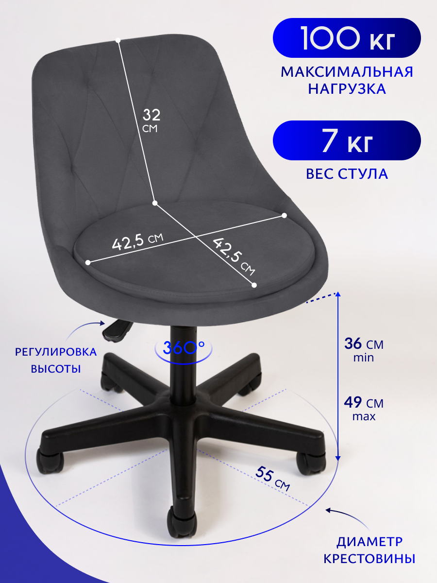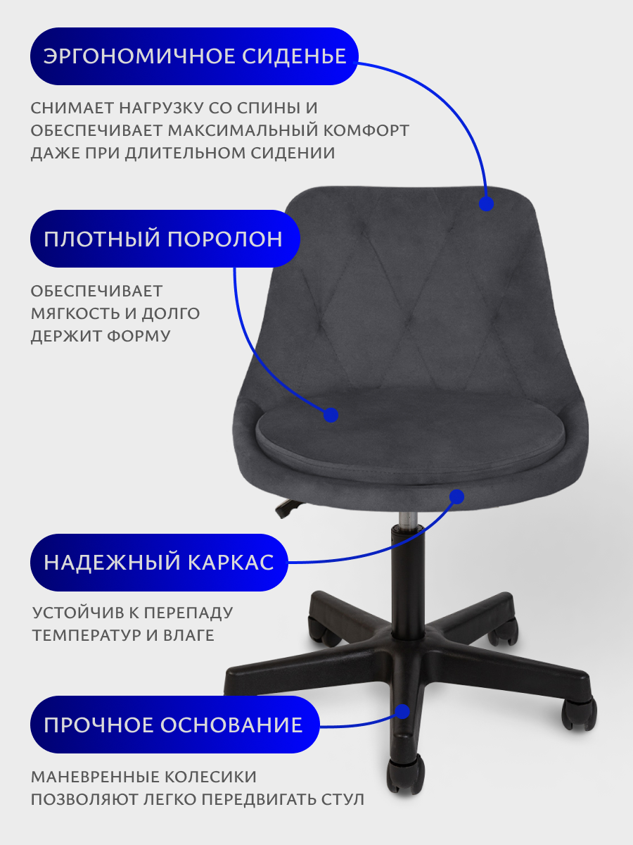 Стул для дома, офиса, мастера Ромб, пластиковое пятилучье, темно- серый интересное: