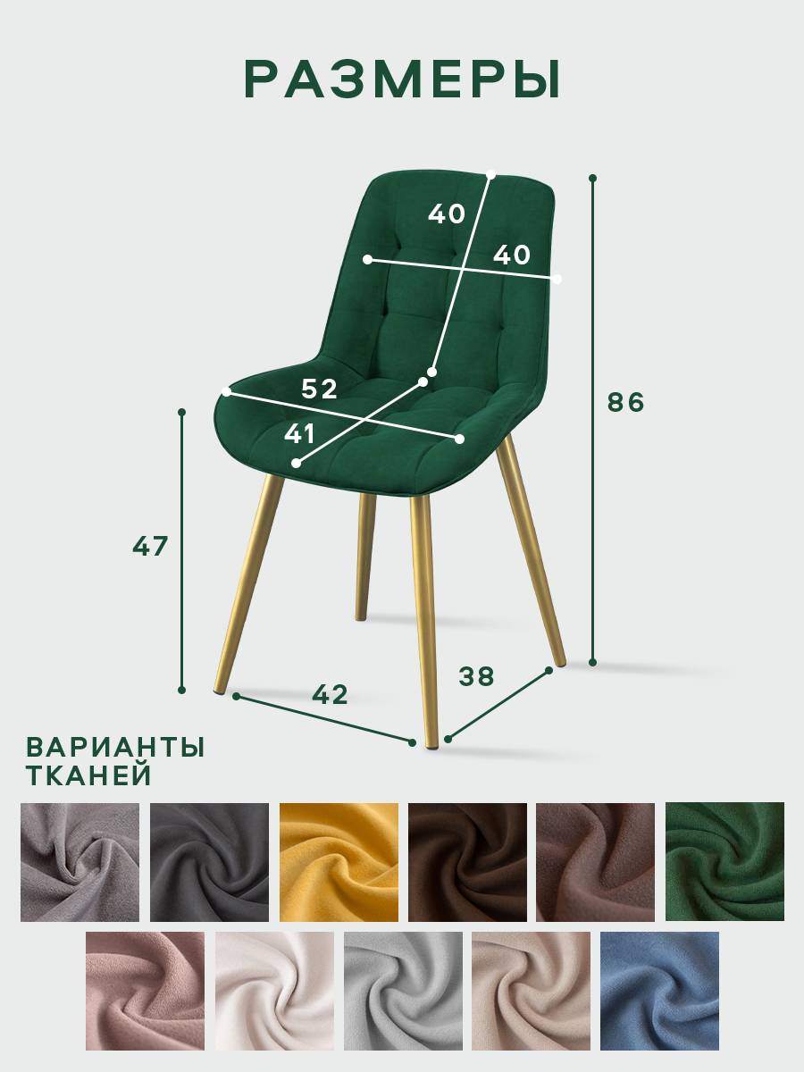 СохранитьСтулья для кухни Румба 2 шт мягкие с поворотным механизмом, зеленый с золотистыми ножками интересное:
