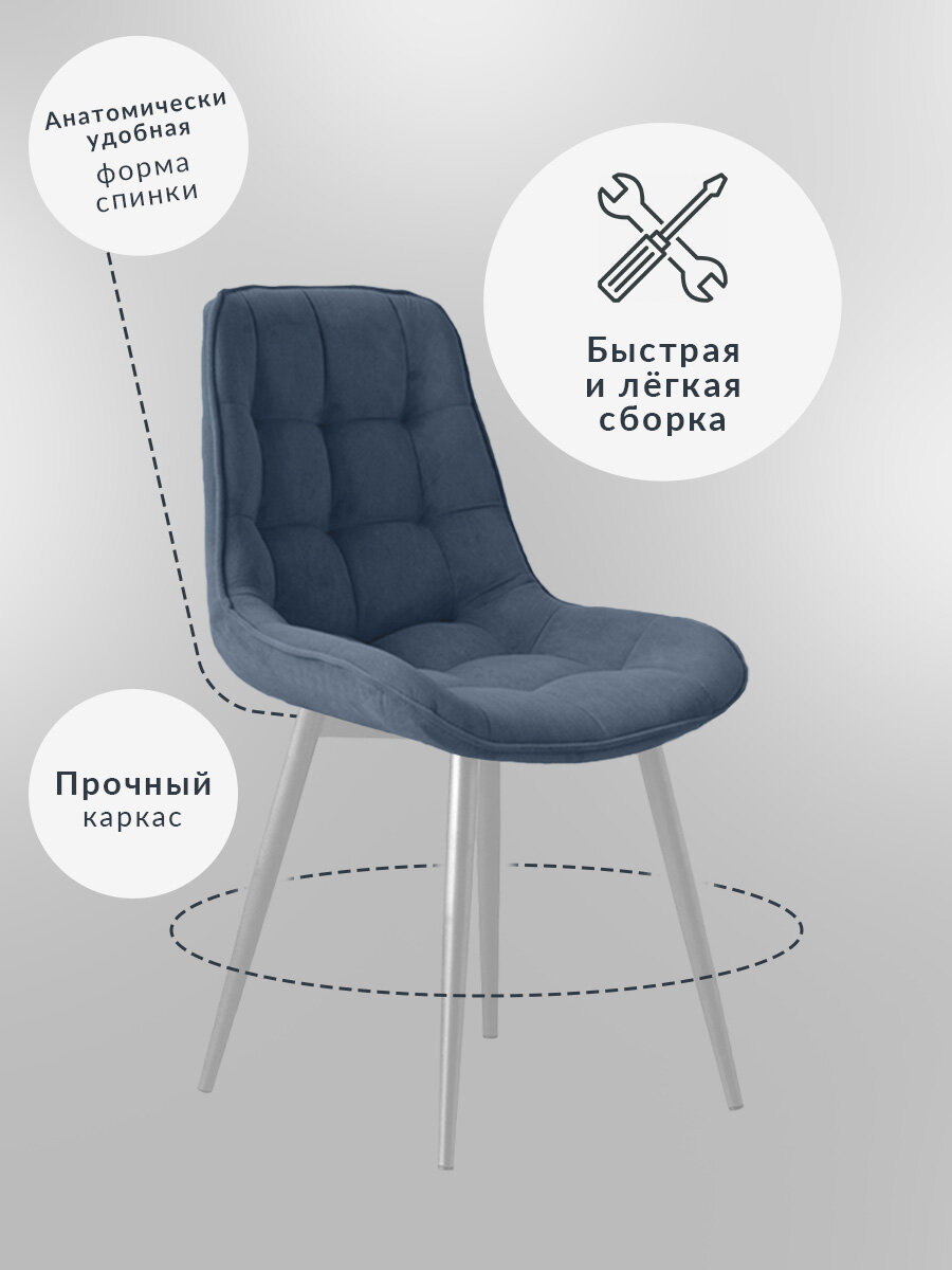Стулья для кухни Румба 2 шт мягкие с поворотным механизмом, синий с белыми ножками