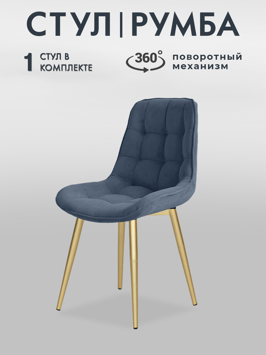Купить Стул кухонный Румба мягкий с поворотным механизмом, синий с золотистыми ножками