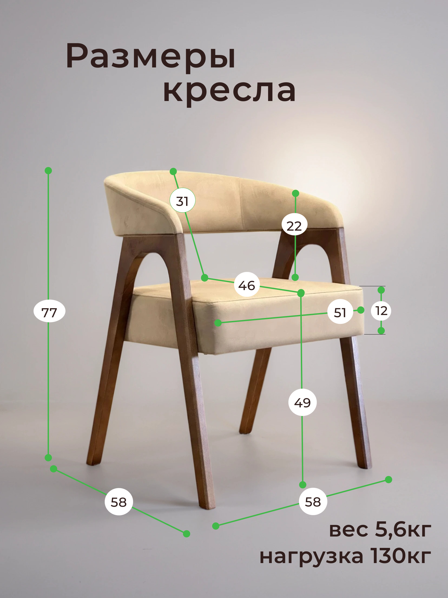 Стул с подлокотниками для кухни и гостиной Бруни низкий. т6. Velutto08, кресло деревянное с мягким сиденьем и спинкой
