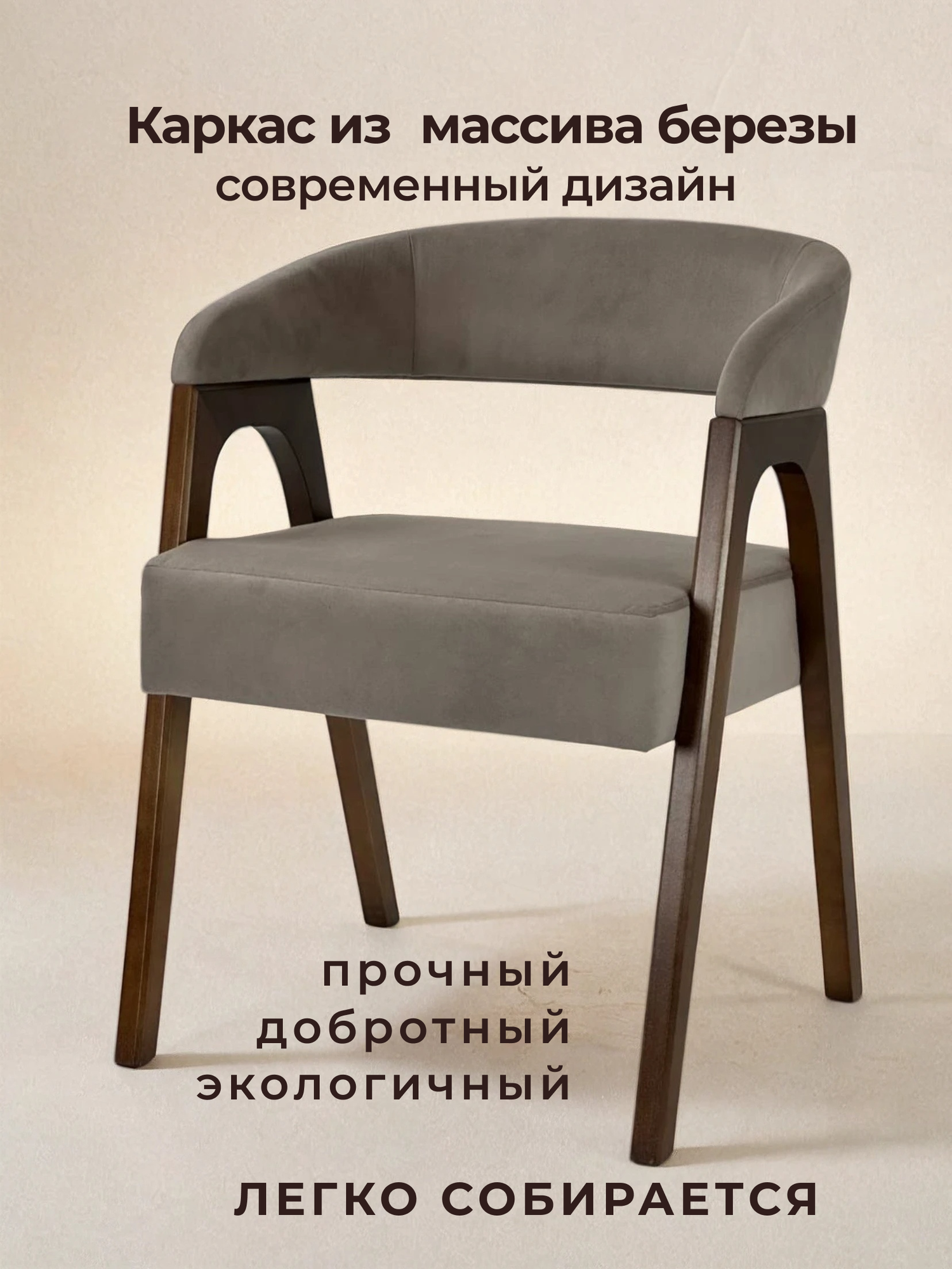 Стул с подлокотниками для кухни и гостиной Бруни. т4. Velutto08, кресло деревянное с мягким сиденьем и спинкой