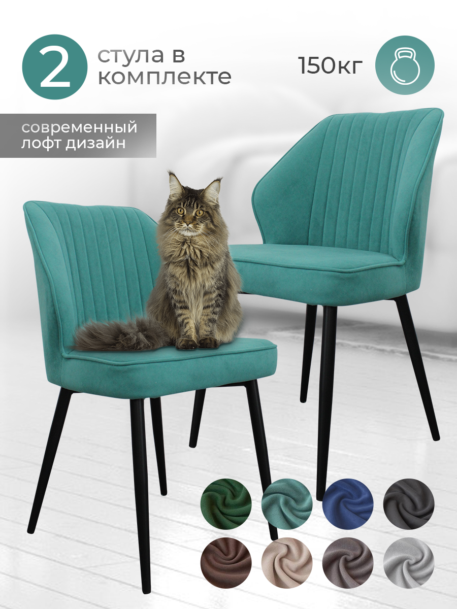 СохранитьСтулья для кухни 2 шт Сиэтл мягкие, с высокой спинкой, мятные, велюр / Комплект кухонных стульев интересное: