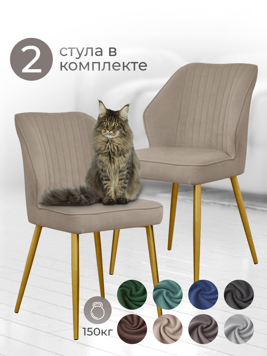 Стулья для кухни 2 шт Кора мягкие, с высокой спинкой, бежевый велюр / Комплект кухонных стульев