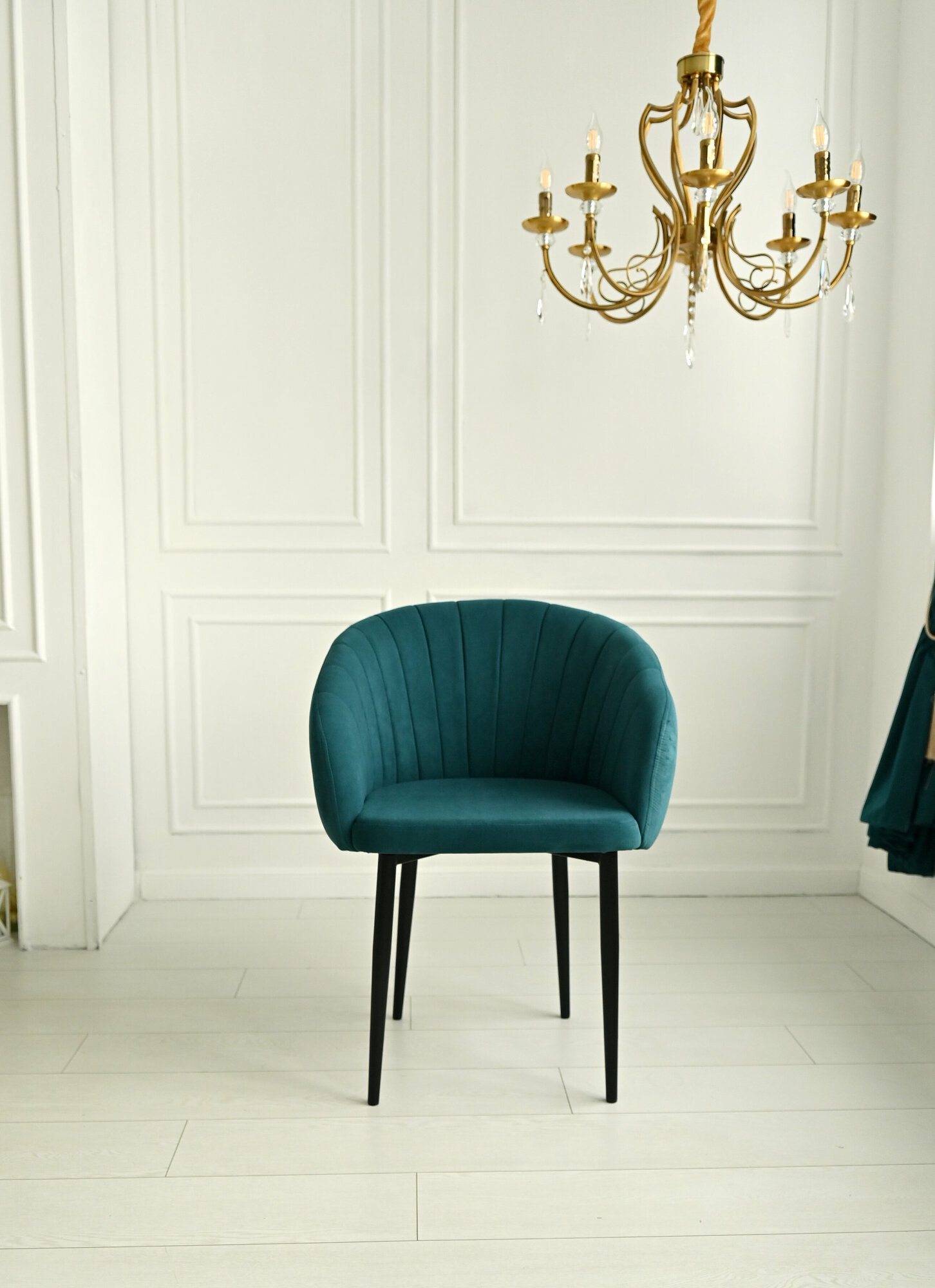 Стулья для кухни Кора 2 шт мягкие, комплект, темно-зеленый с золотистыми ножками
