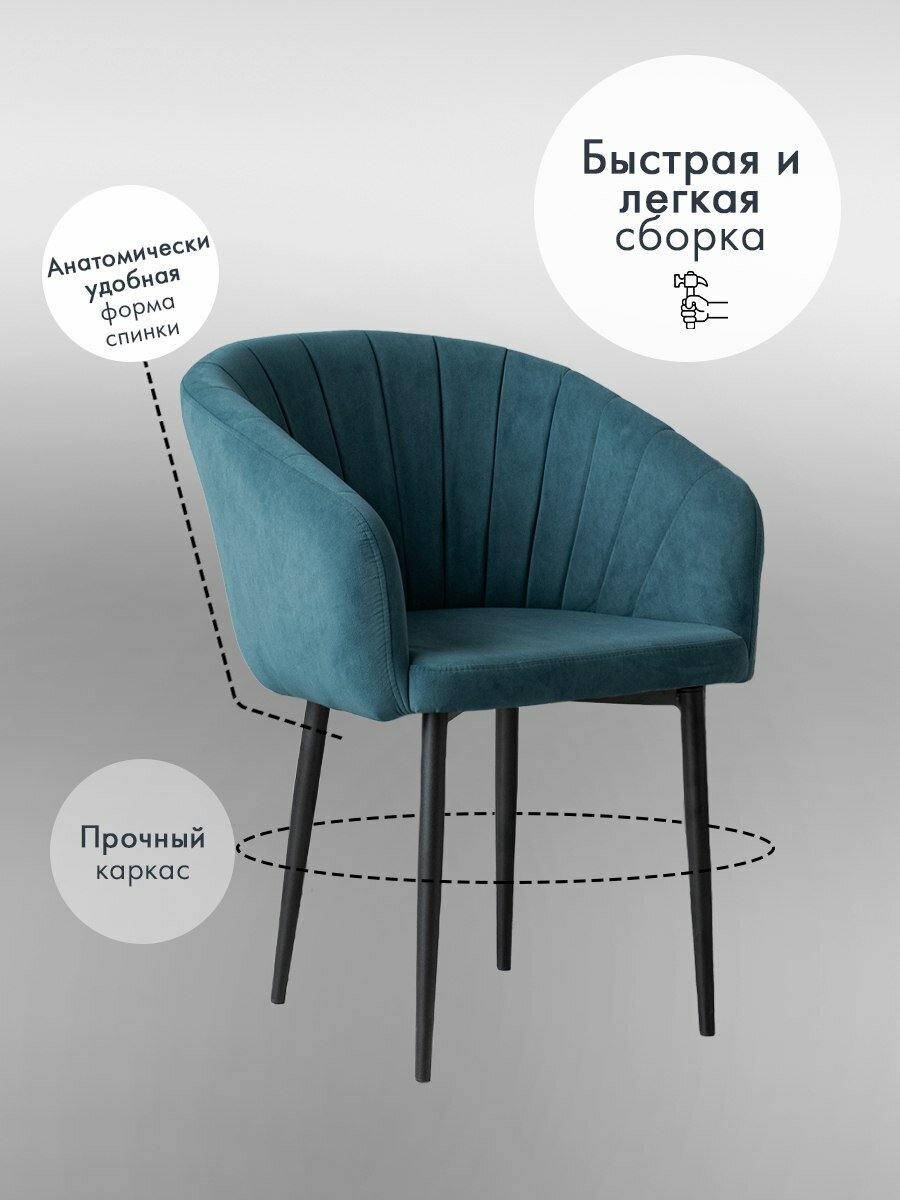Стулья для кухни 2 шт Сиэтл мягкие, с высокой спинкой, мятные, велюр / Комплект кухонных стульев