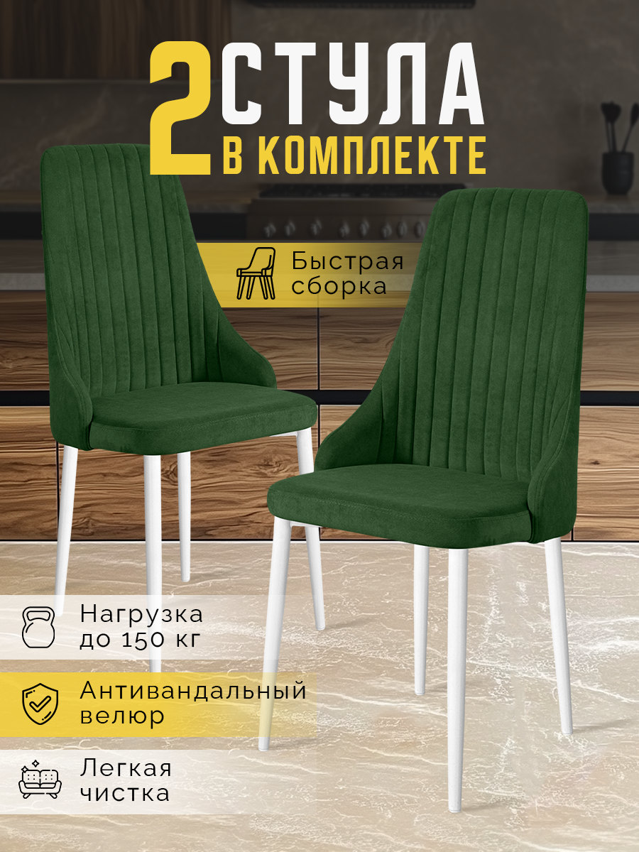 Купить Стулья для кухни Кора 2 шт мягкие, комплект, зеленый с белыми ножками